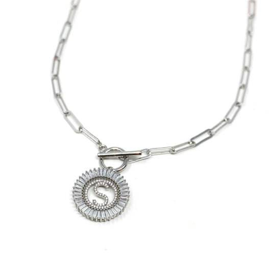 Gold Customized Paperclip Radiant Initial Necklace -24 inch chain