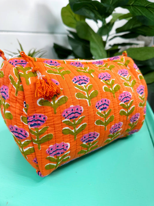 Quilted Makeup Bags | Cosmetic Toiletry Bag | Orange FloralRegular price $34.00Regular priceUnit price per-