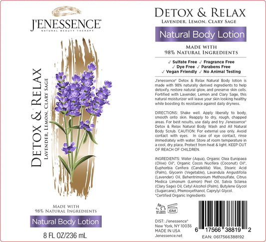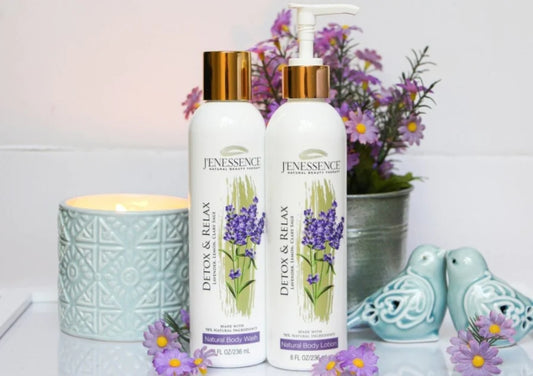 J'enessence Detox and Relax Natural Therapy Lavender Body Lotion and Wash Bundle Set