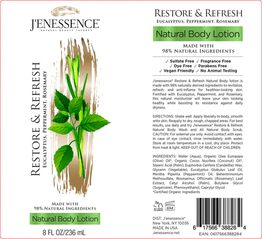 Restore & Refresh 98% Natural Therapeutic Body Lotion (Mint, Eucalyptus, Rosemary)