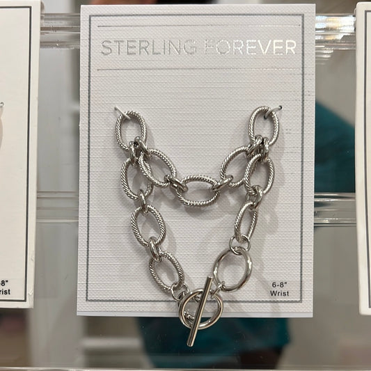 Becks CZ Accent Two Tone Cable Bracelet Silver