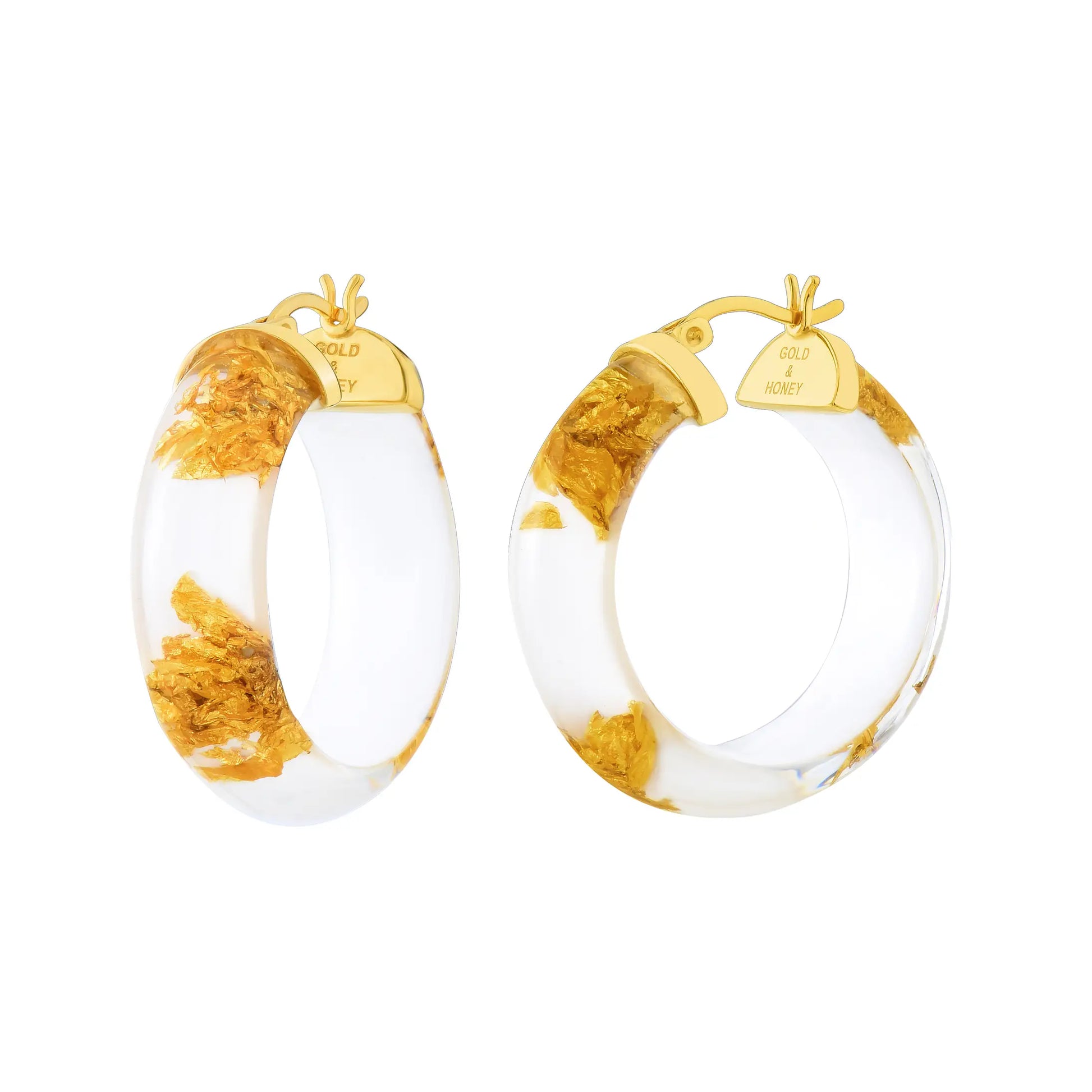 These are a perfect size earring that is infused with 24K gold leaf. The contrast handprinted enamel and gold will look great dressed up or even for a casual day out.