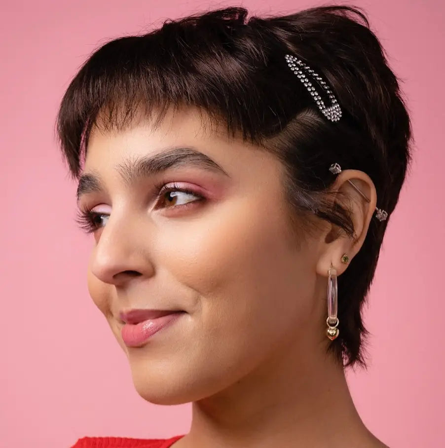 The clear hoop is classic for every season. The golden charm is a fun and cute way to spice up your ear game!