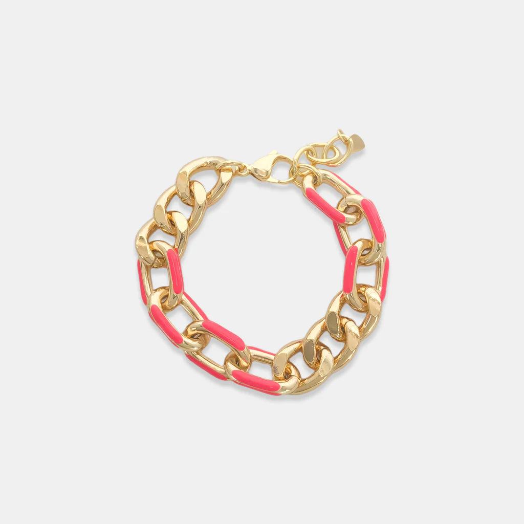 A classic, colorful curb chain bracelet with enamel paperclip in hot pink enamel.