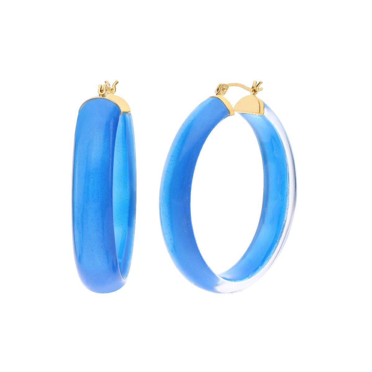 2.5" Round Hoops - Handcrafted Lucite - Hand painted enamel - 14k gold plated sterling silver.
