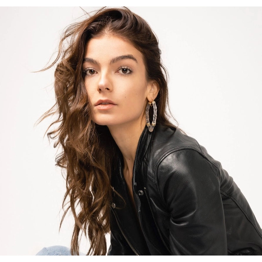 These are a Luxe addition to our bamboo hoop collection. These marquise earrings are elegant and chic. The clear lucite and gold accents make these the perfect going out hoop. Watch as they glisten like glass in the light. Luxury to the max!