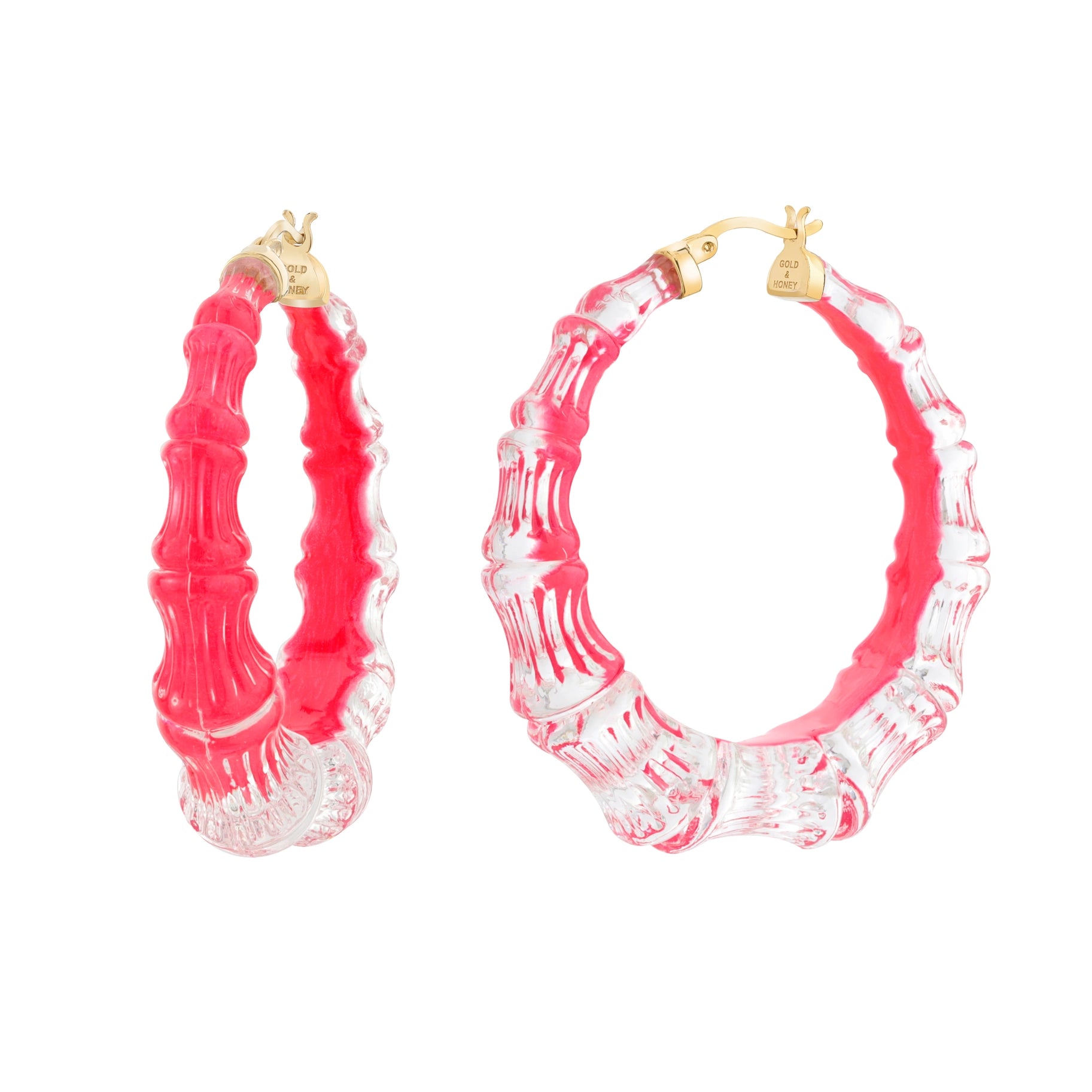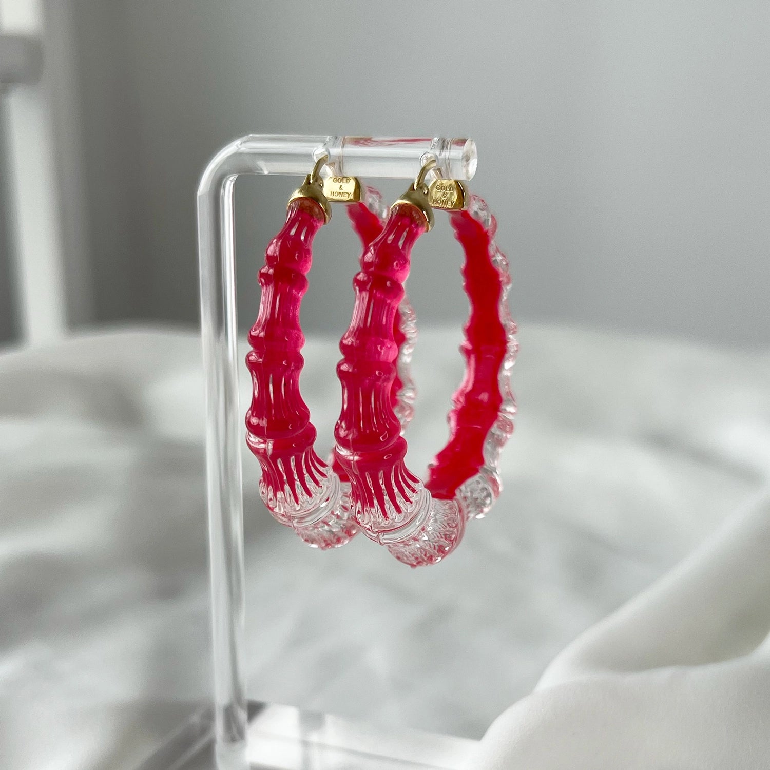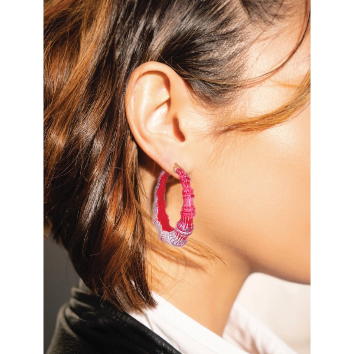 2" Illusion Bamboo Hoop Earrings in Pink Peacock
