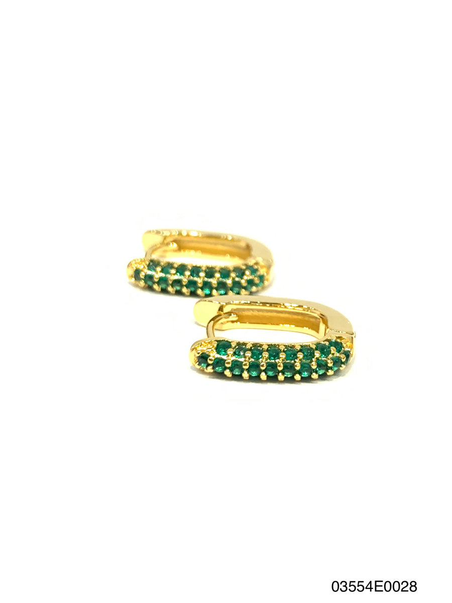 Ali elongated petite hoop earrings with hand set high quality CZ, Gold finish, Emerald