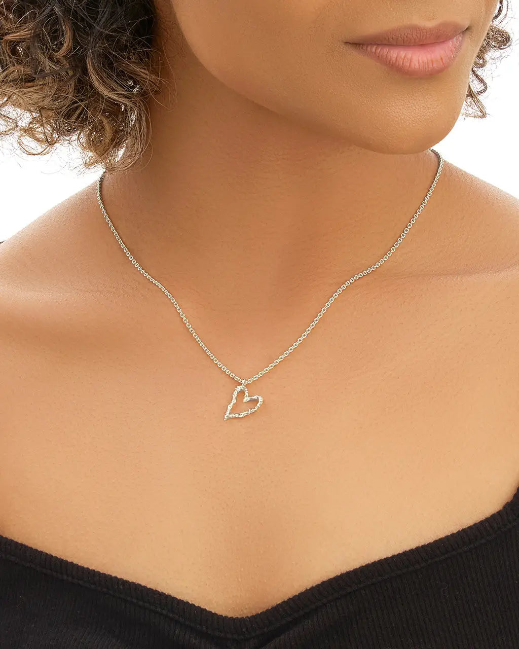 Sharing a little love has never been easier. This necklace features an organic open heart design that's adorned with dainty CZ stones for extra shine! Available in gold and silver tones. Adjustable for a perfect fit.