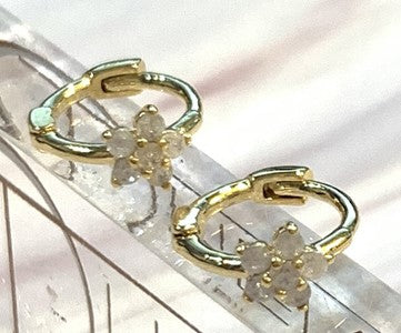Aria petite hoop earrings with high quality Ice CZ, Gold finish, Great alone or stacked