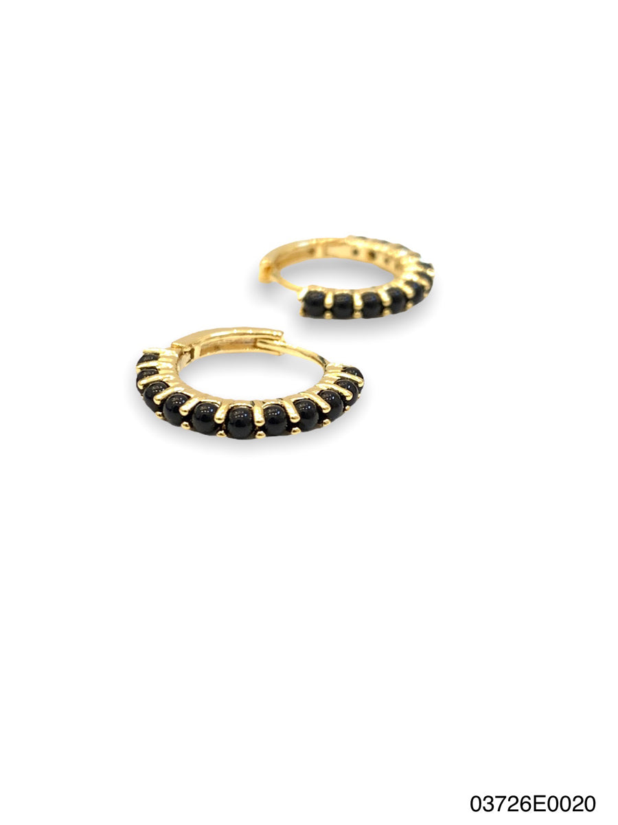 Azura huggie Earrings. Gold, Onyx, Small