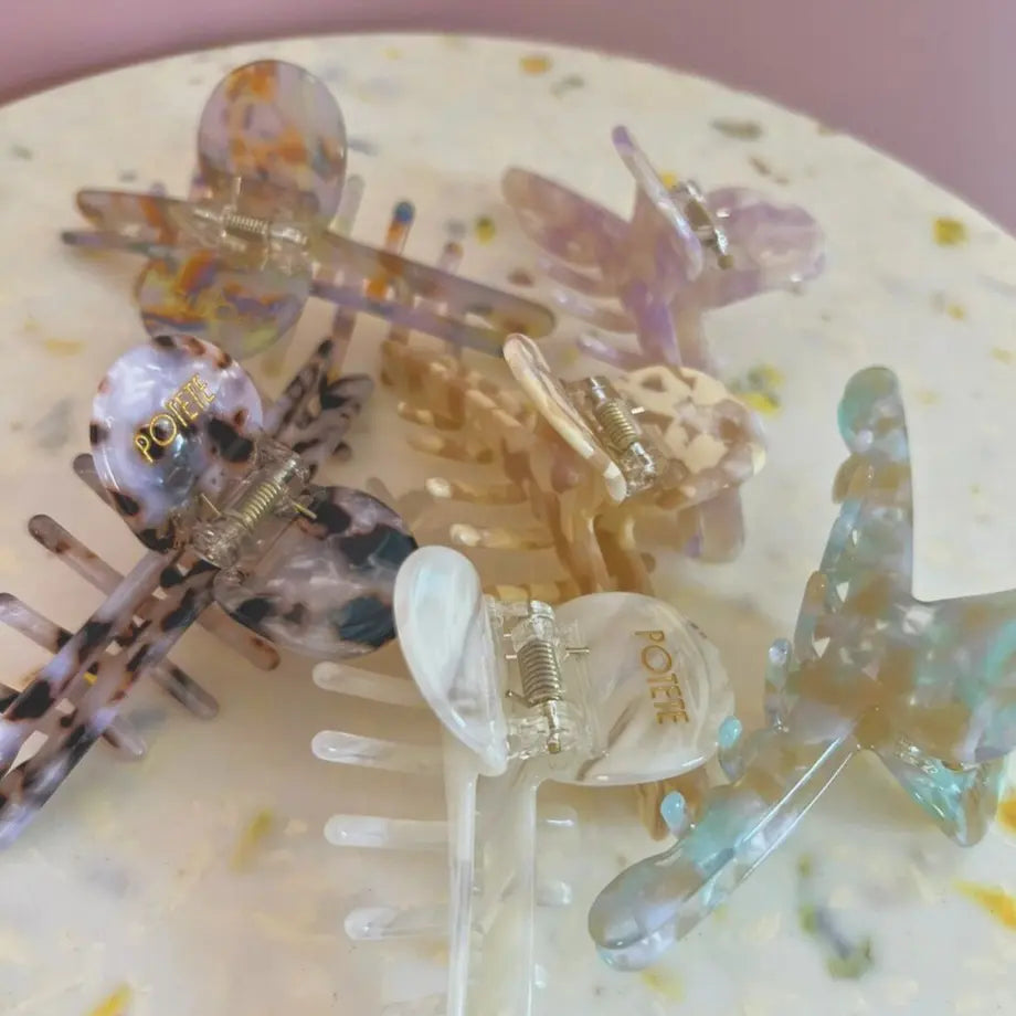 Hair clips that hold together firmly even for those with long hair or a large amount of hair. It is designed to be longer than a normal hair clip, so it is easy to put your hair together. It is a large hair clip, but by making it a slender form, it's designed so that the back figure does not want to be wild.
