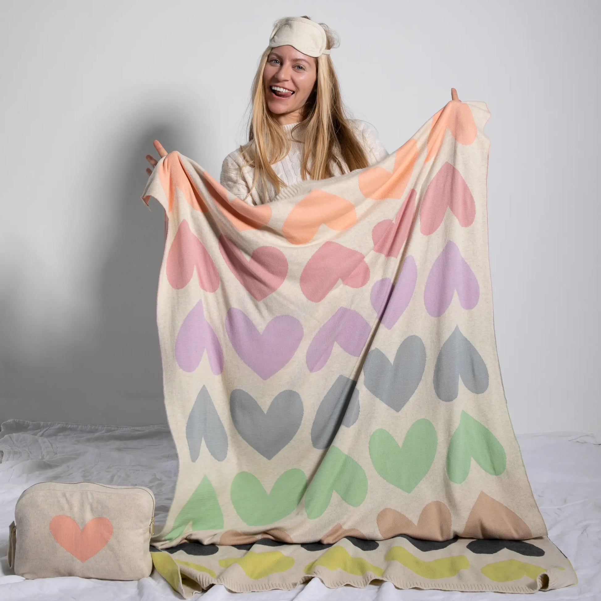 Blush Hearts - Pastel Travel Blanket