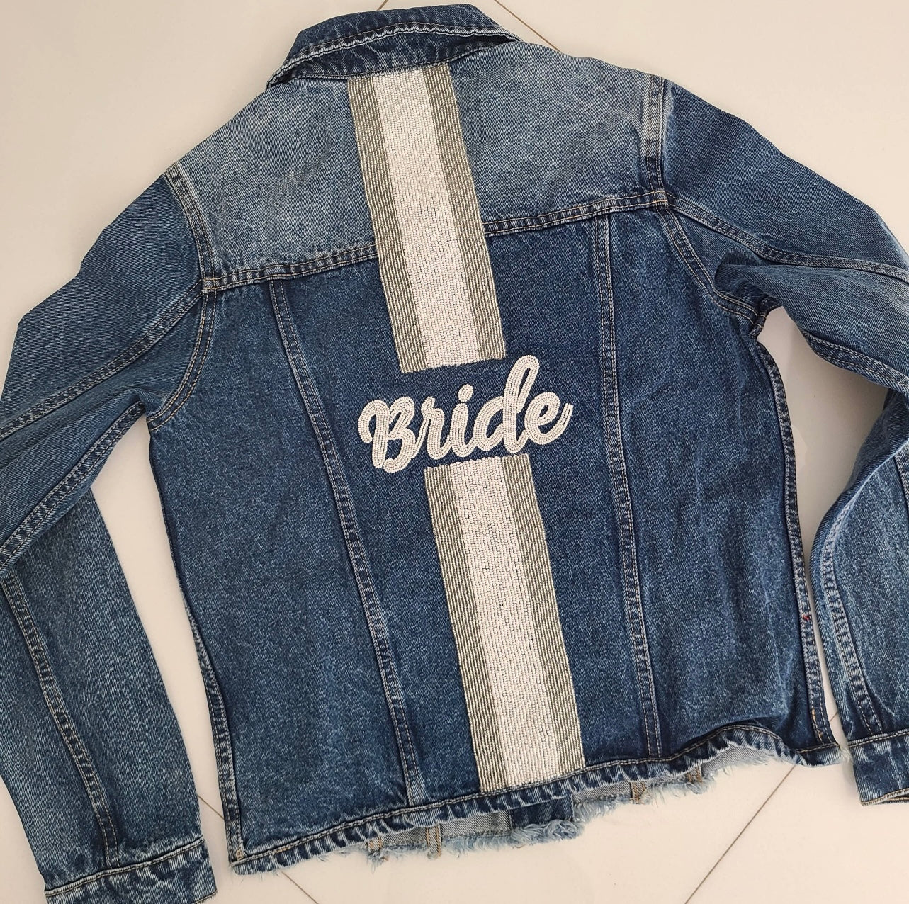 Great jacket for any bride. It does run small. If your size is not available send a message and we can special order.