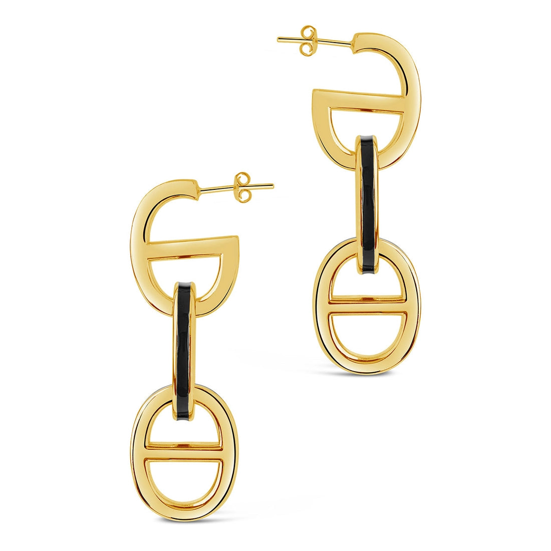 Rock the chain-link look with these bold geometric designs. These post back earrings are lined with glam black enamel and are available in gold and silver tones.