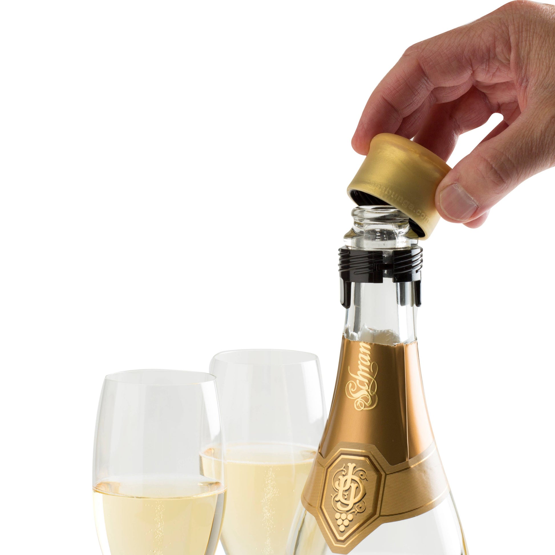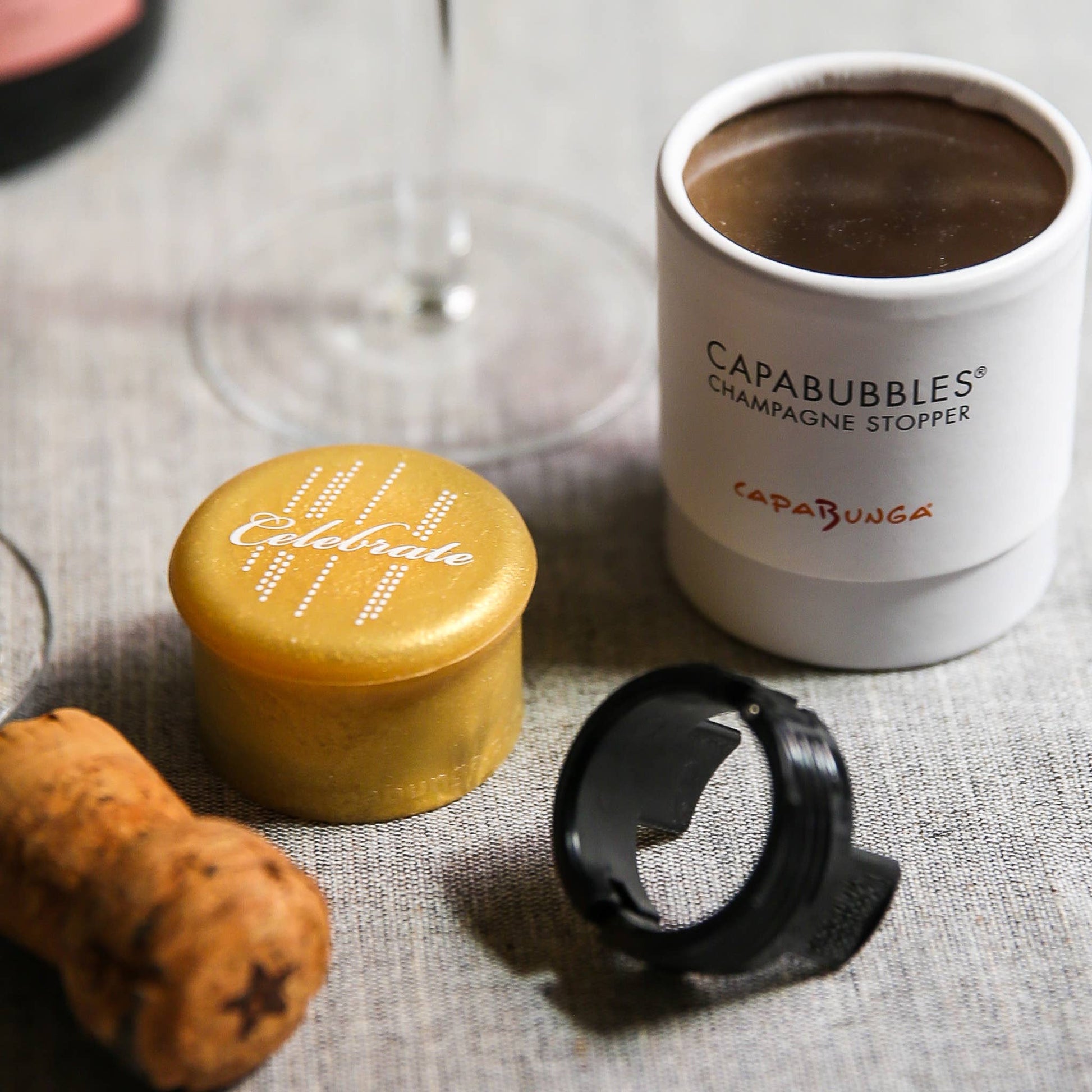 CapaBubbles® is a reusable silicone cap that reseals a bottle of sparkling wine once it is opened. An adaptation of the original CapaBunga®, it transforms a bottle of sparkling wine into a screw cap bottle. The cap has a threaded insert that once unscrewed from the base clips under the flange of the sparkling wine bottle, the cap is then twisted down on top of this piece preserving the bubbles in your Champagne or Sparkling wine for up to one week. These are shipped in tubes. Great Stocking Stuffer for a Prosecco or Champagne lover. Christmas, Holiday