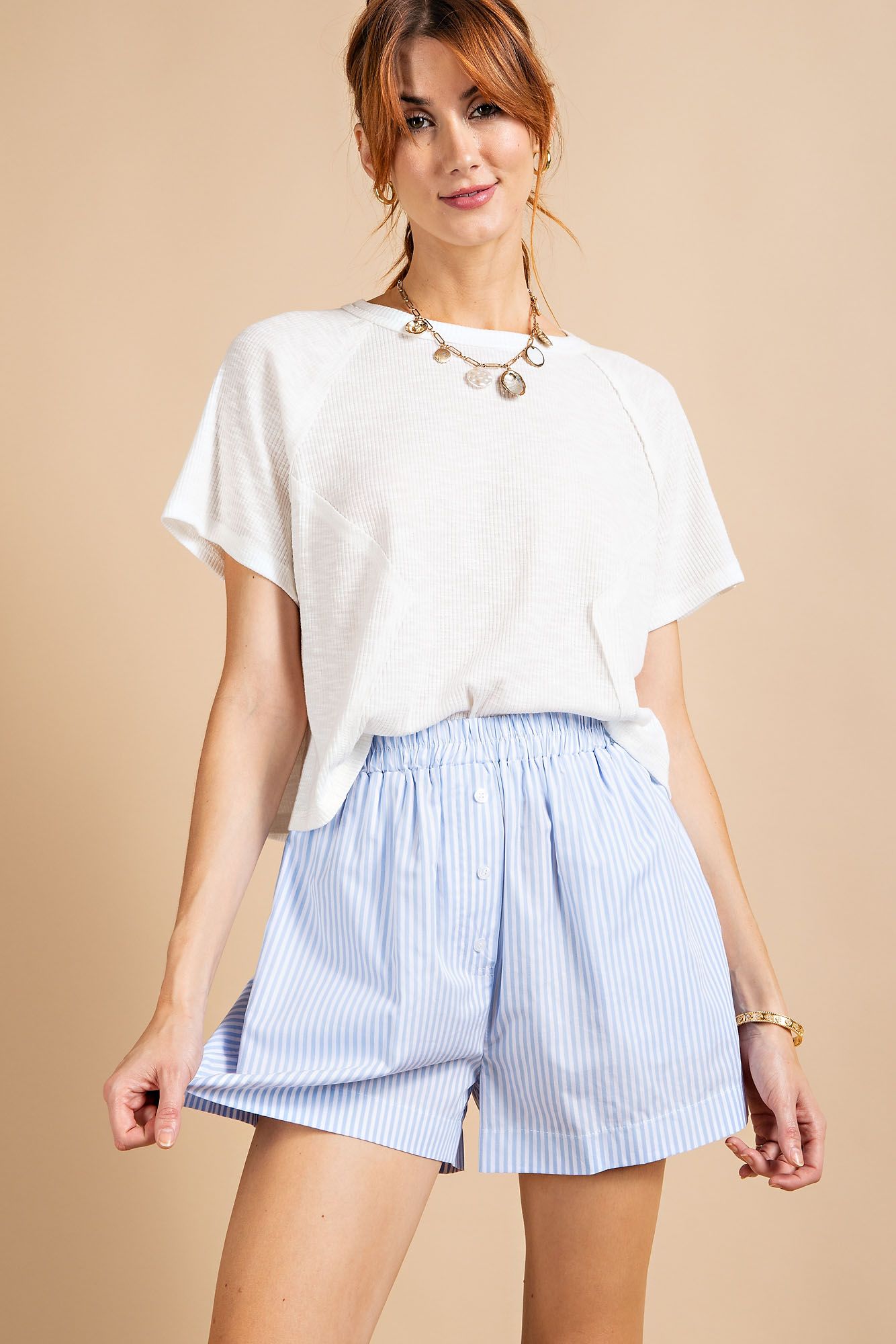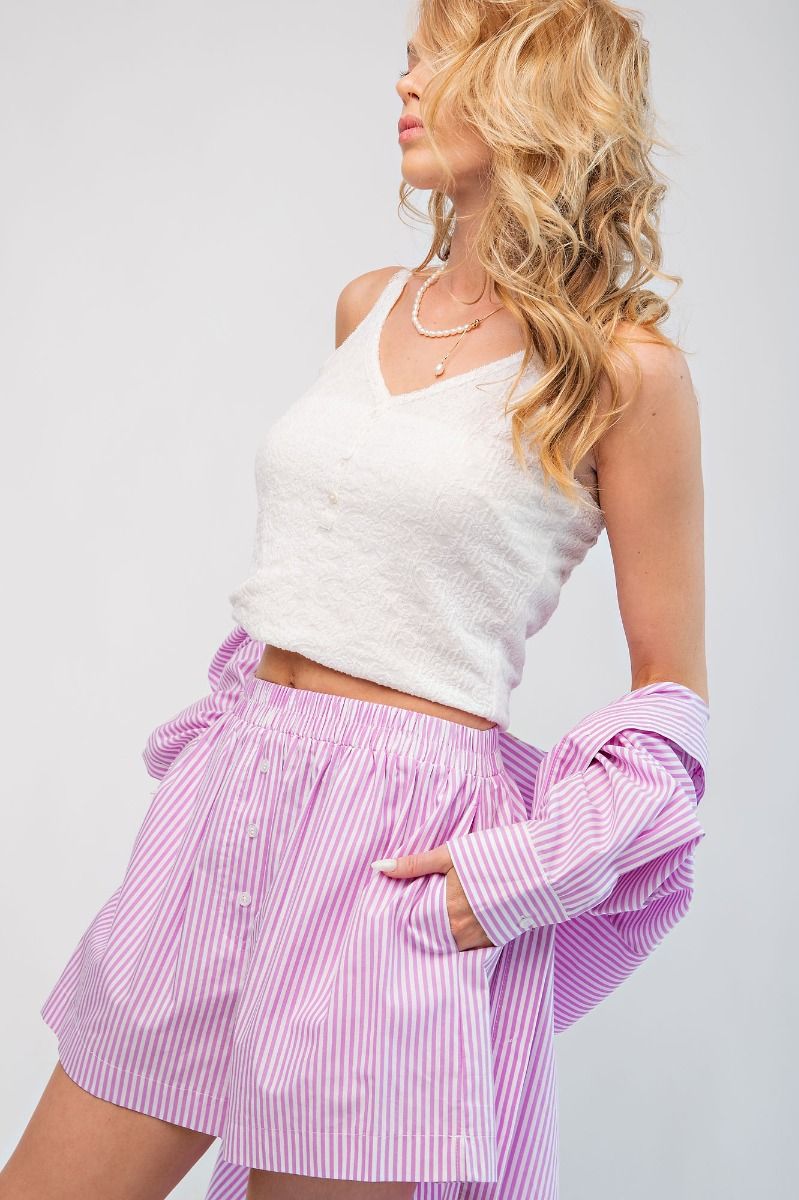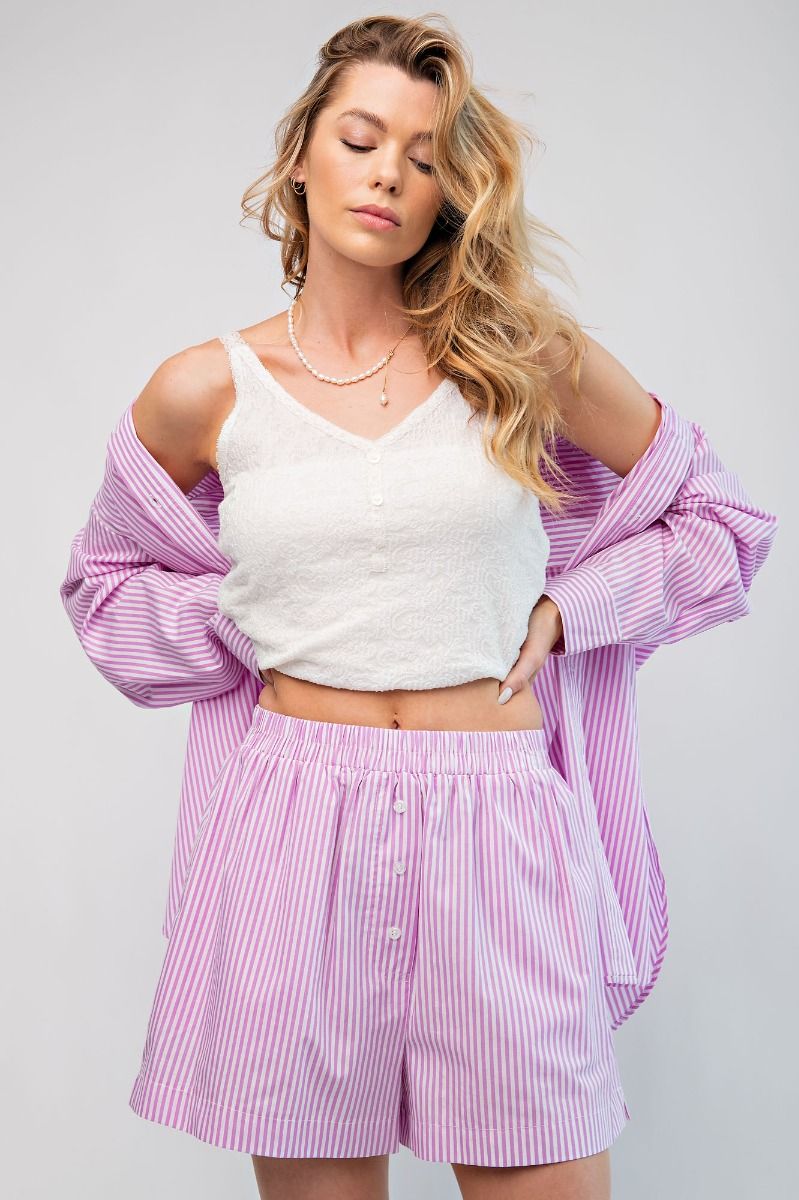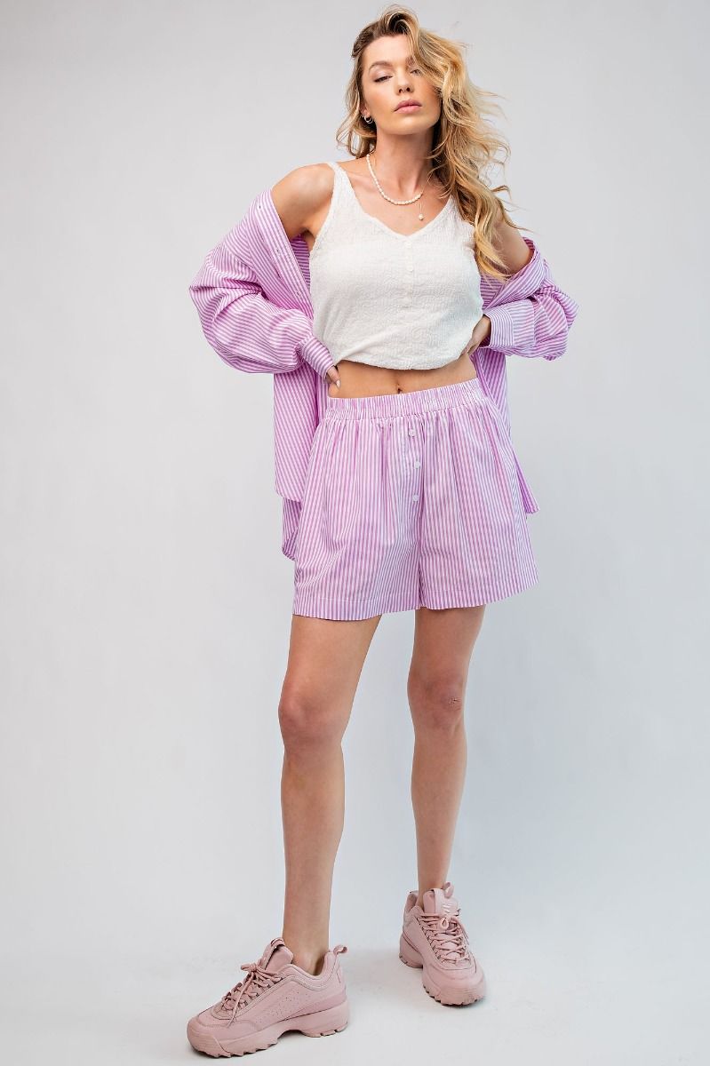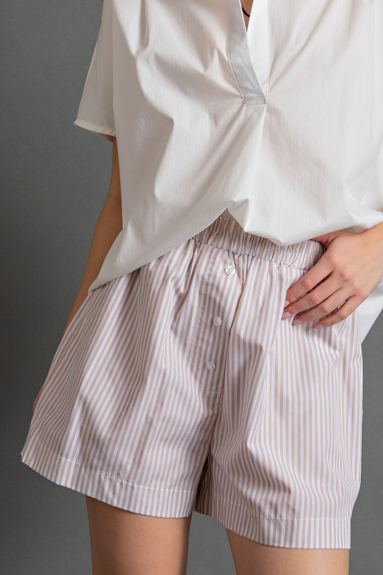 Cotton Voile Boxer Striped Shorts in 3 Colors