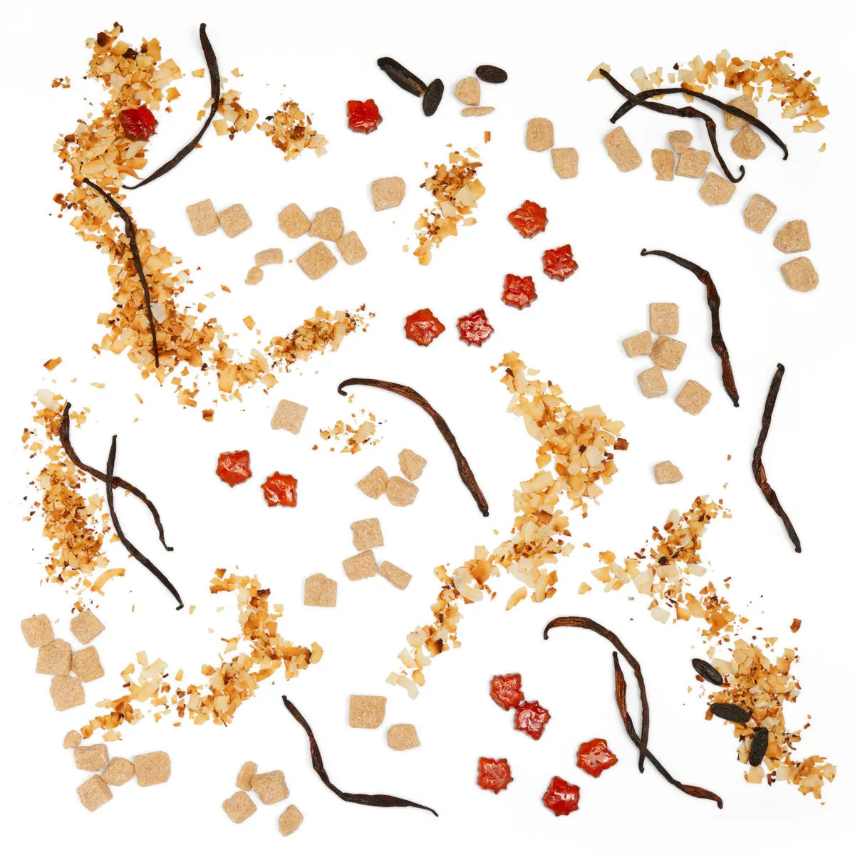 Decadent vanilla, tonka bean, and dark maple are whipped with toasted coconut and topped with torched sugar.