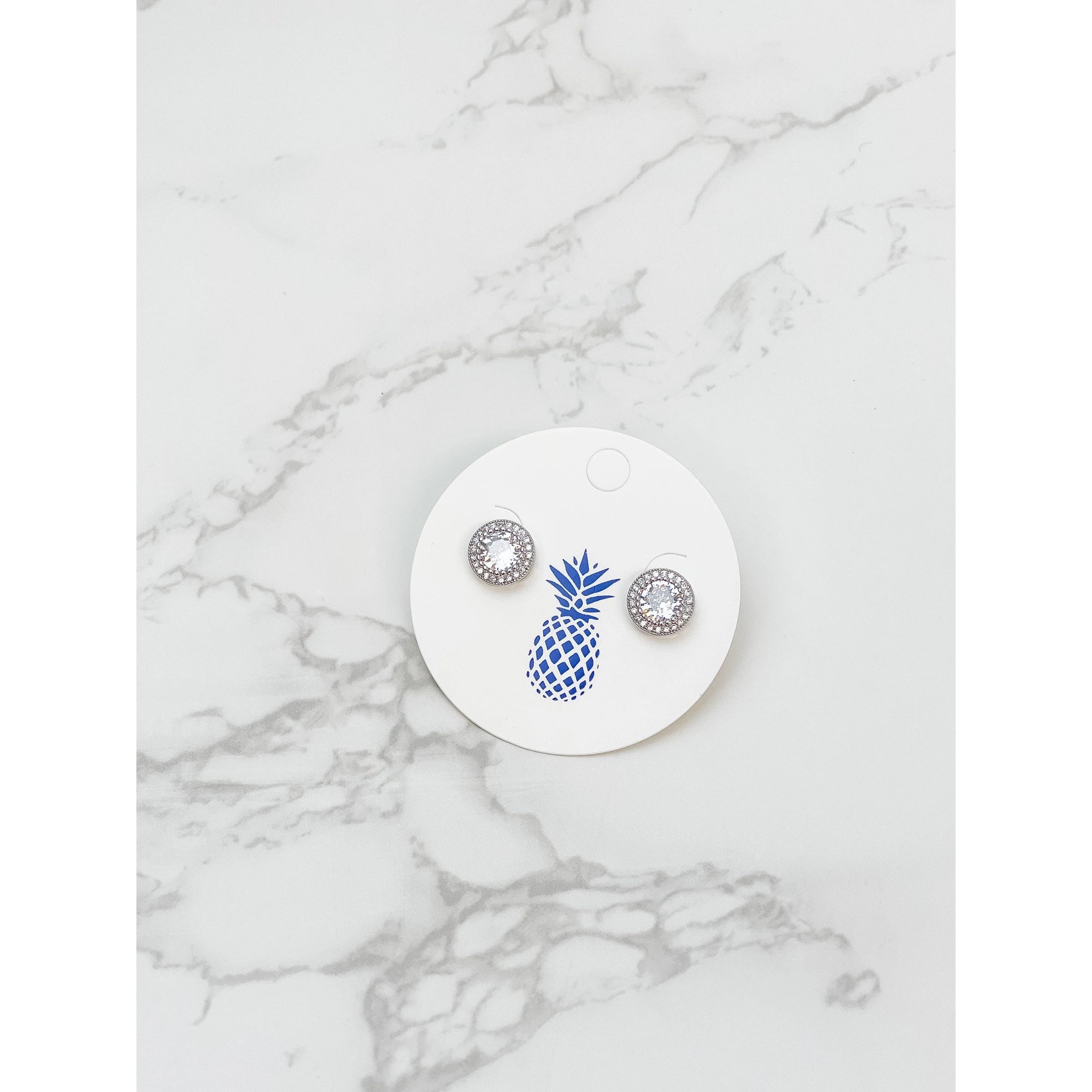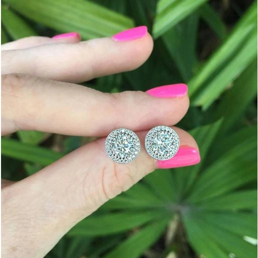 Cubic Zirconia Halo Stud Earrings