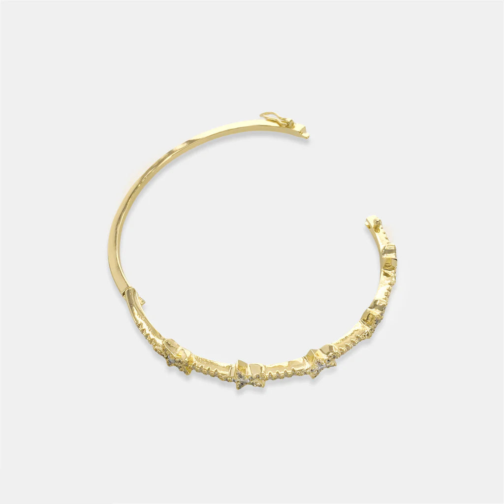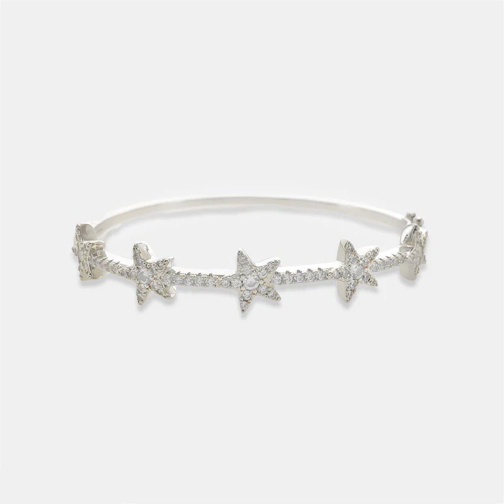 Cubic Zirconia Star Bangle Bracelet in Gold or Silver