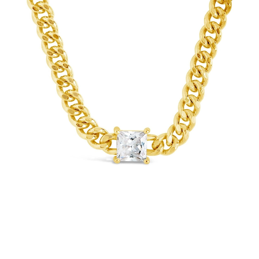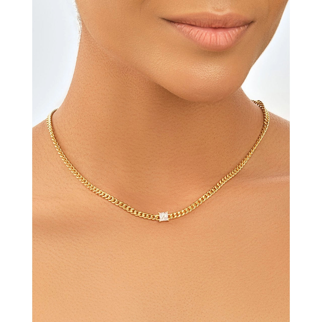 Take your look to the next level! This curb chain necklace features a sparkling center CZ stone. It's perfect for layering and adjusts for a perfect fit. Available in gold and silver tones.