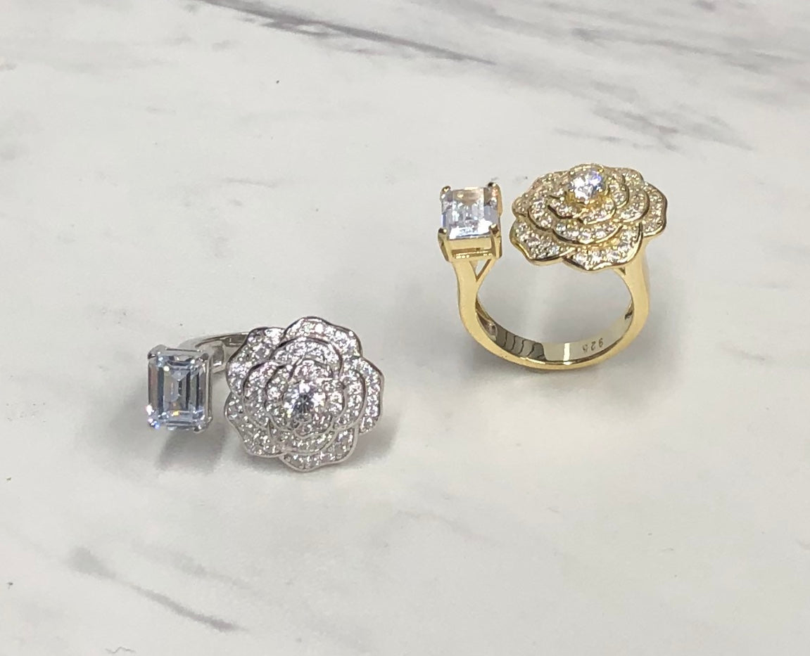 CZ Gold Flower and Rectangle Stone Ring