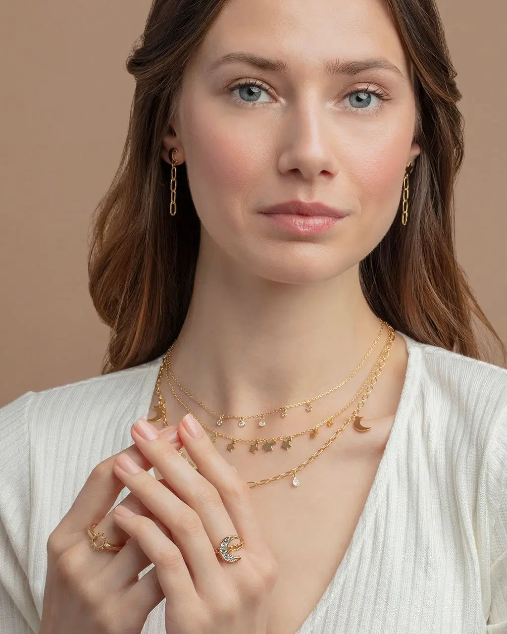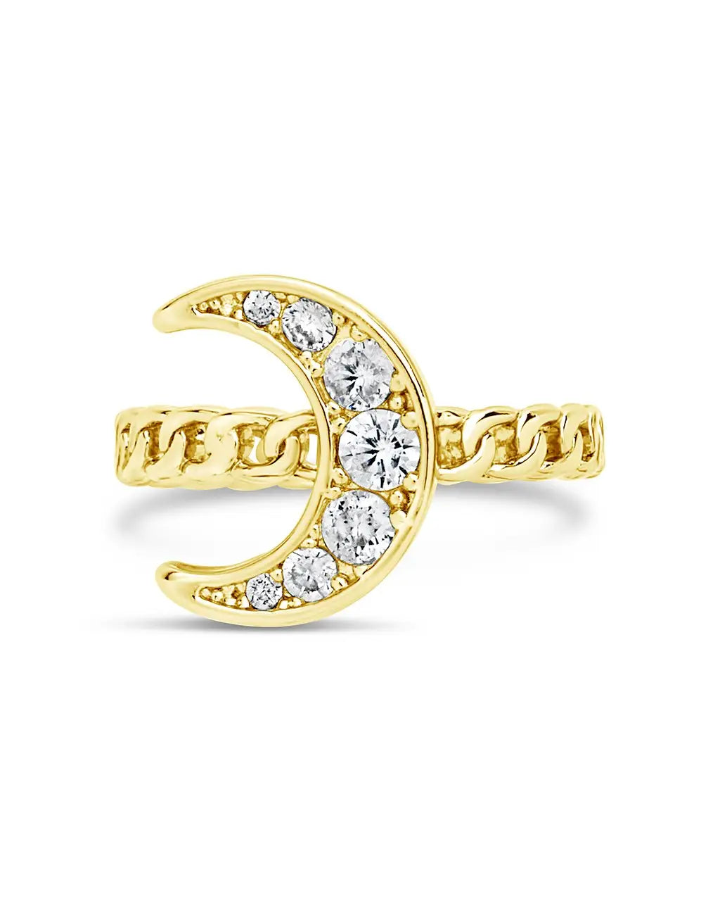 Wish you could take the beauty of moonlight everywhere you go? Now, you can! This chain link band features a sparkling, CZ-studded center charm. Available in gold and silver tones.