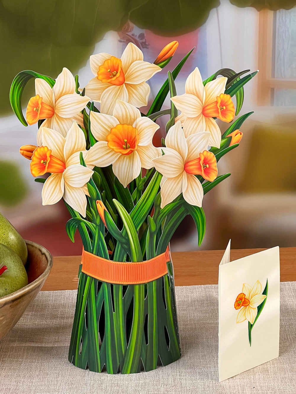 A bouquet of Freshcut Paper Daffodils is a delightful celebration of uplifting emotions and support. Daffodils are a hardy springtime flower that traditionally symbolize resilience and success.