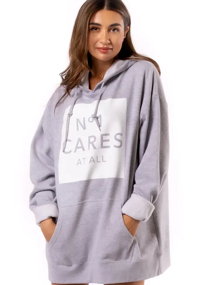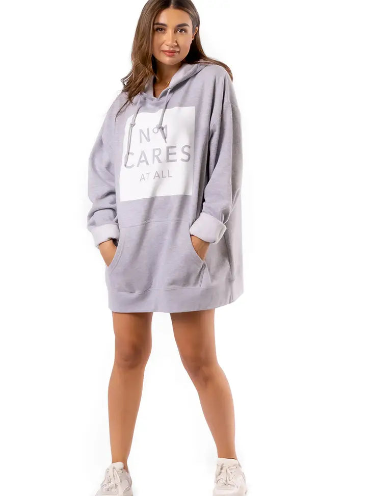 Drix Oversized Hoodie Sweatshirt - No one Cares (Grey)