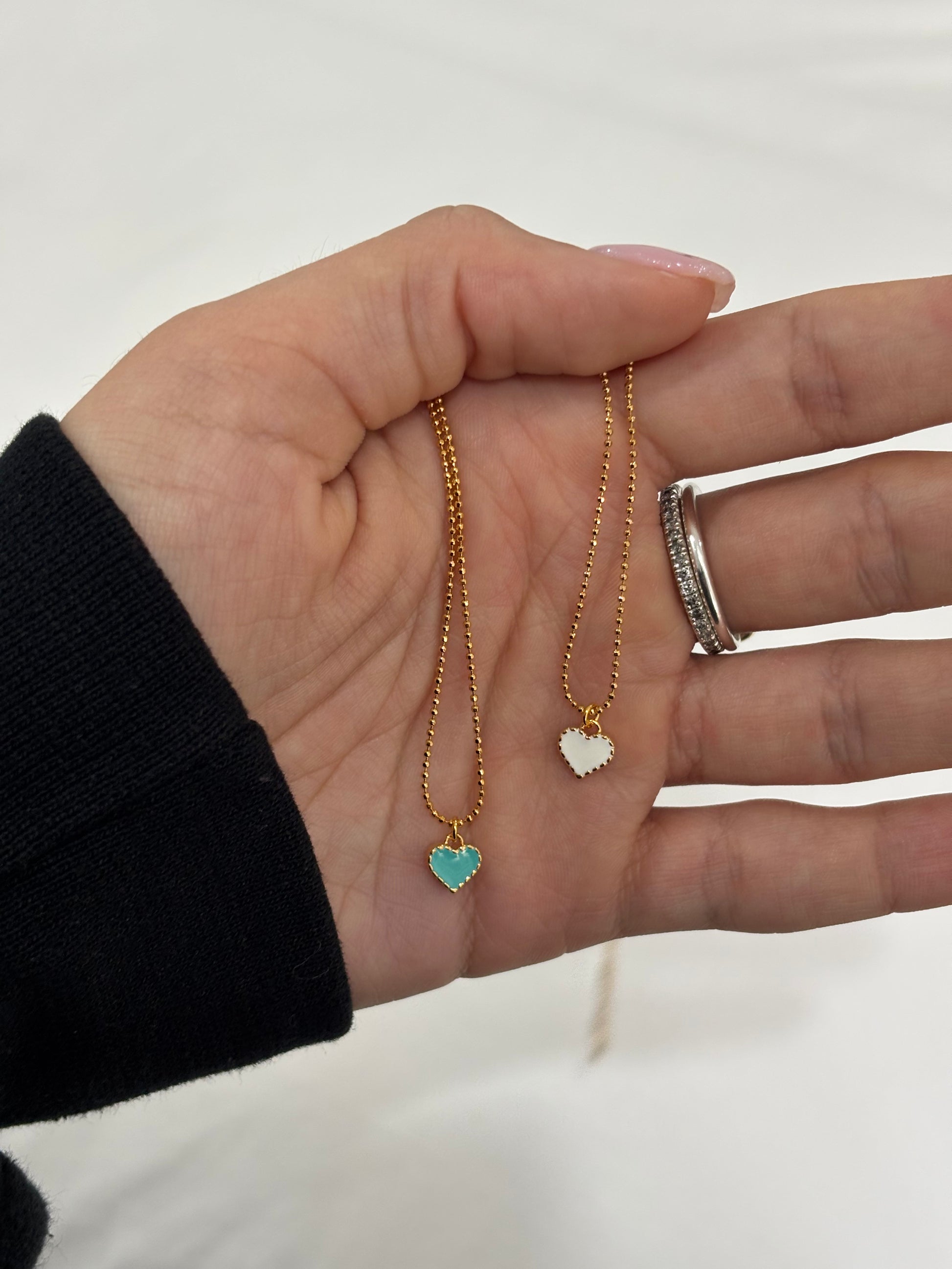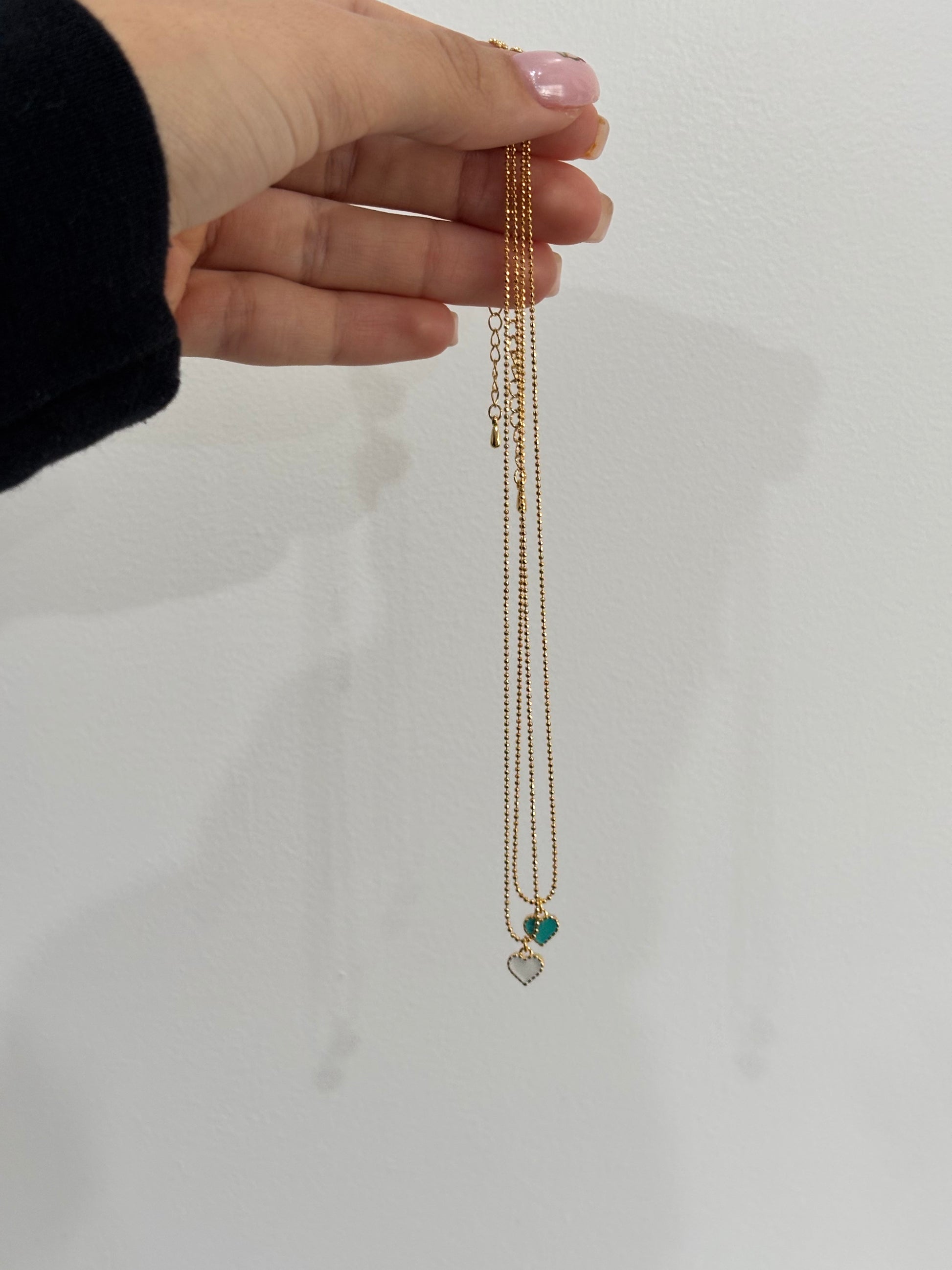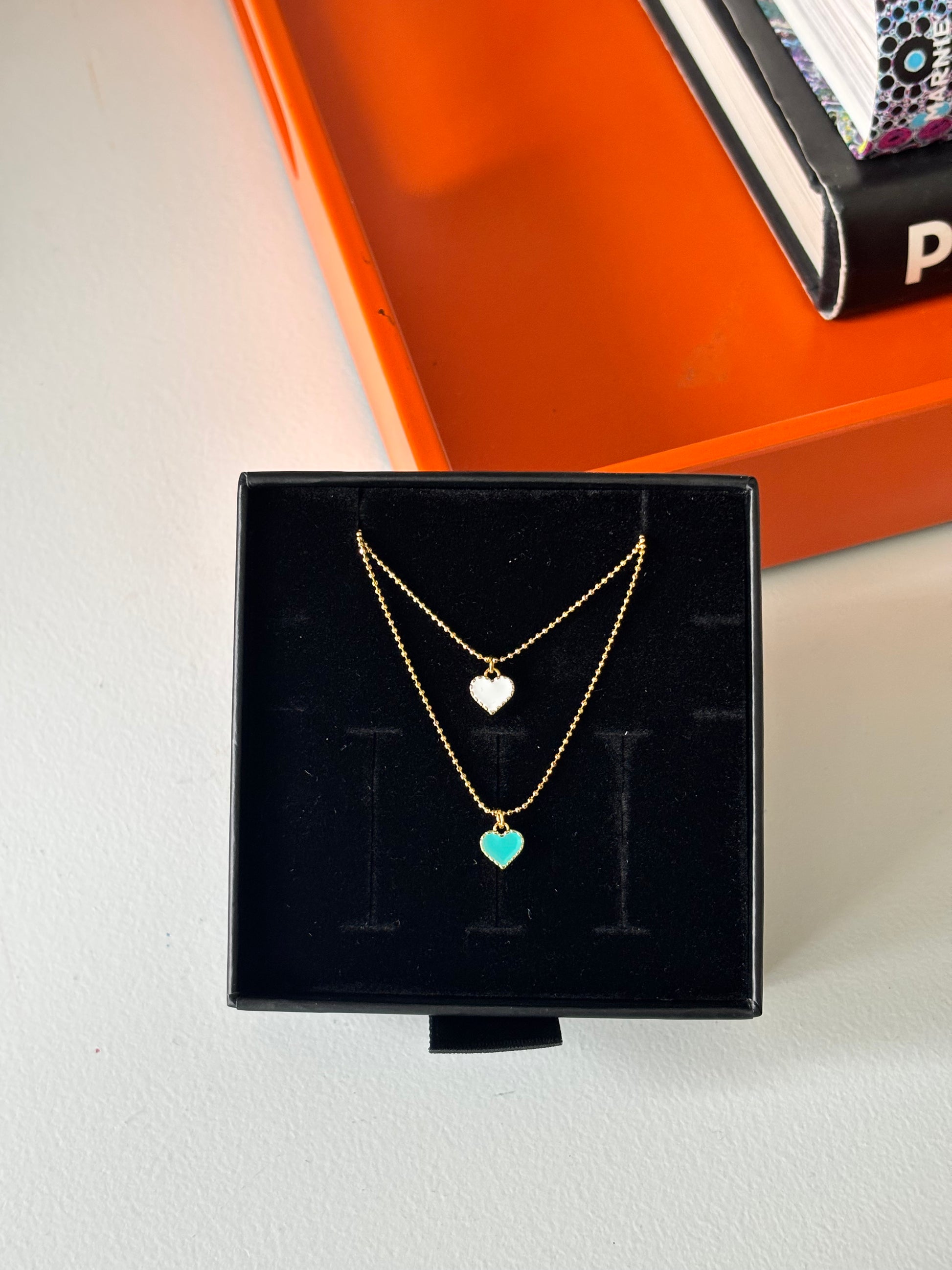 Enamel Heart with Short Necklace in Gold Finish