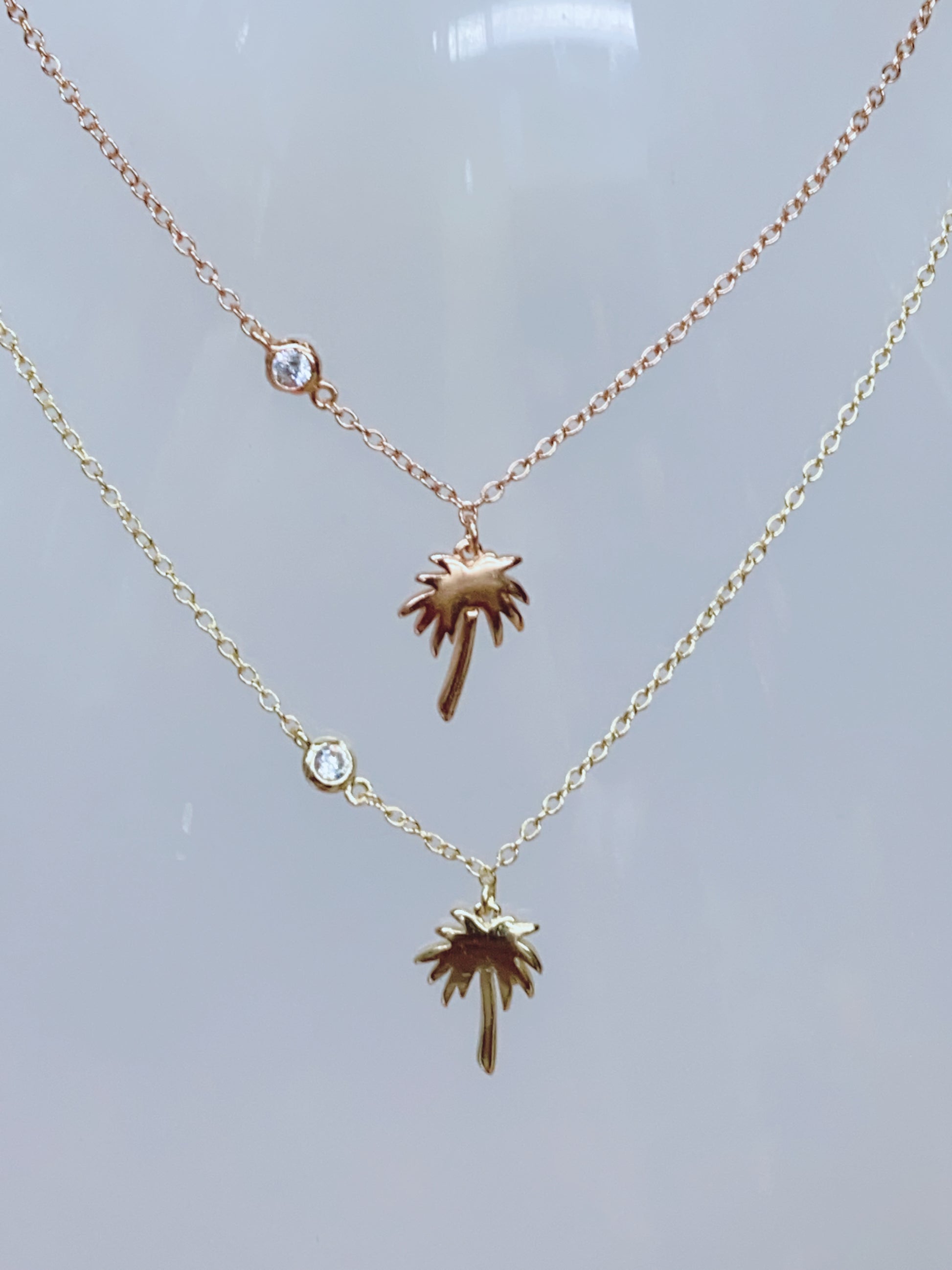 Gold Plated Necklace with Palm Tree and CZ Stone