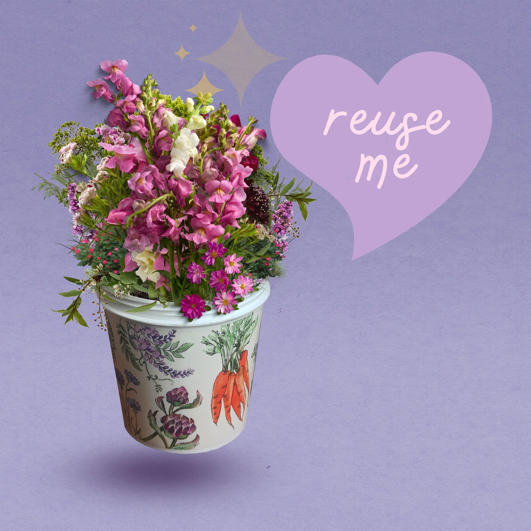 - Packaging design features hand painted illustrations created by a British artist. Reuse the container as a plant pot ideal for growing seeds and bringing on seedlings.