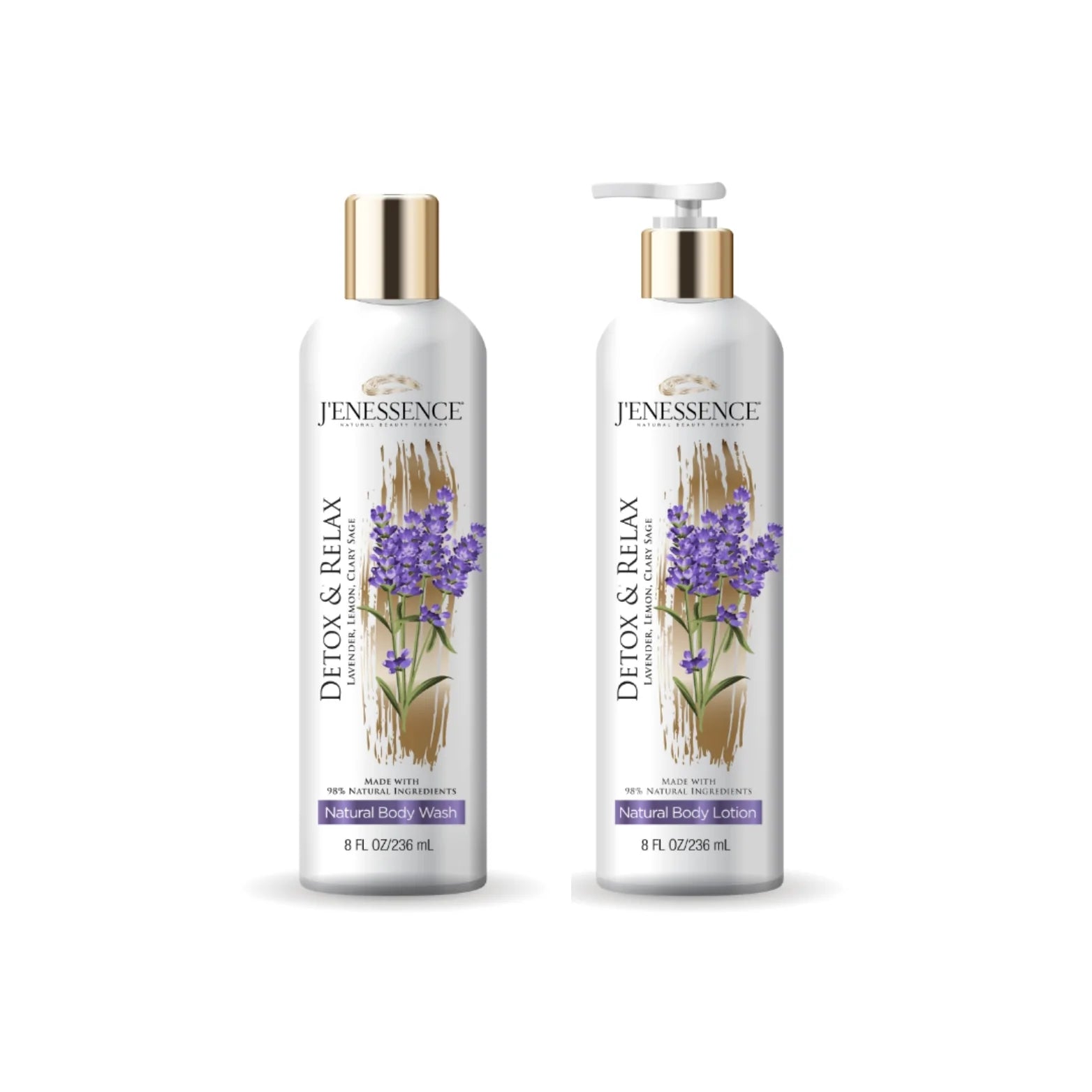 J'enessence Detox and Relax Natural Therapy Lavender Body Lotion and Wash Bundle Set