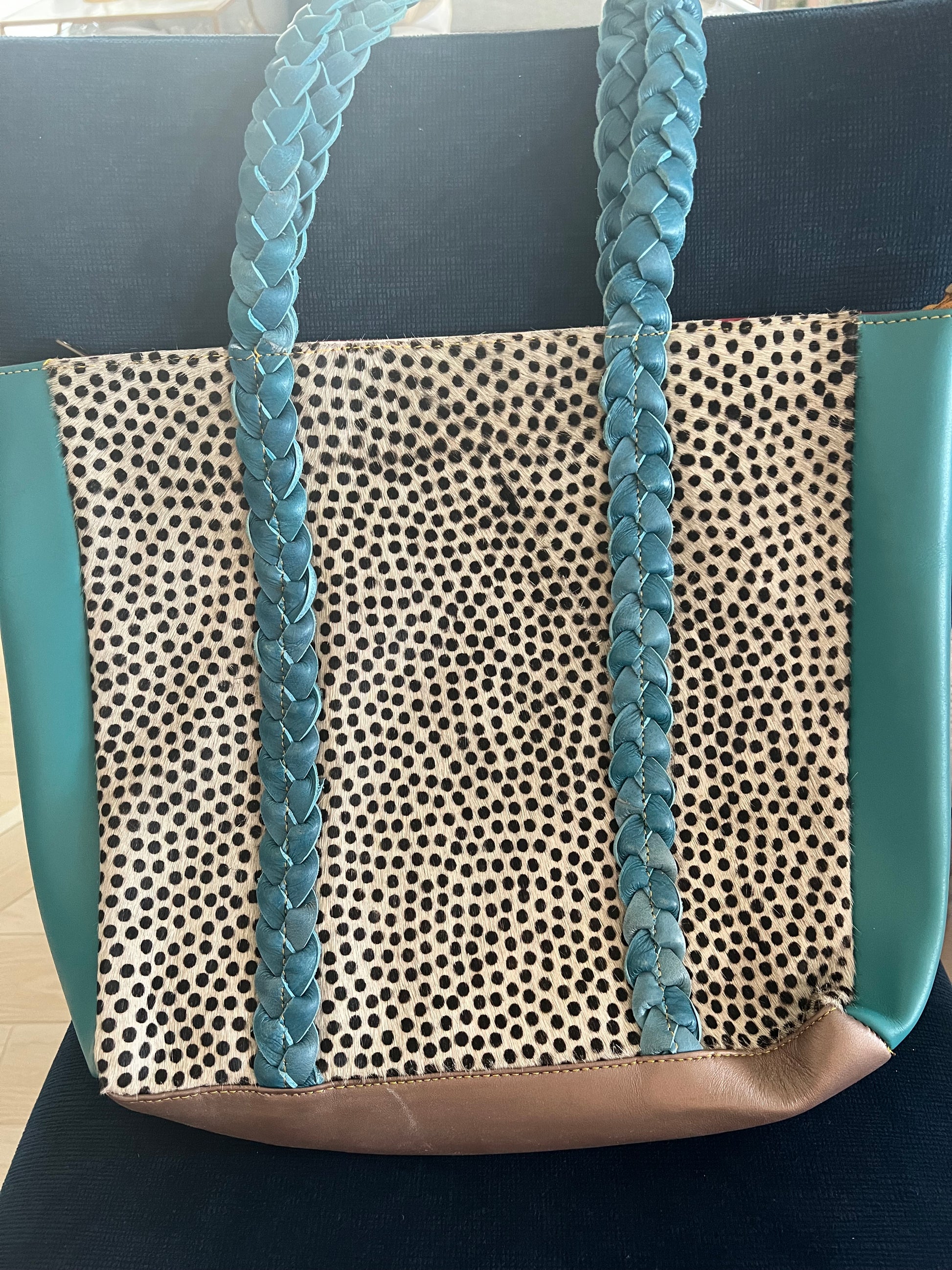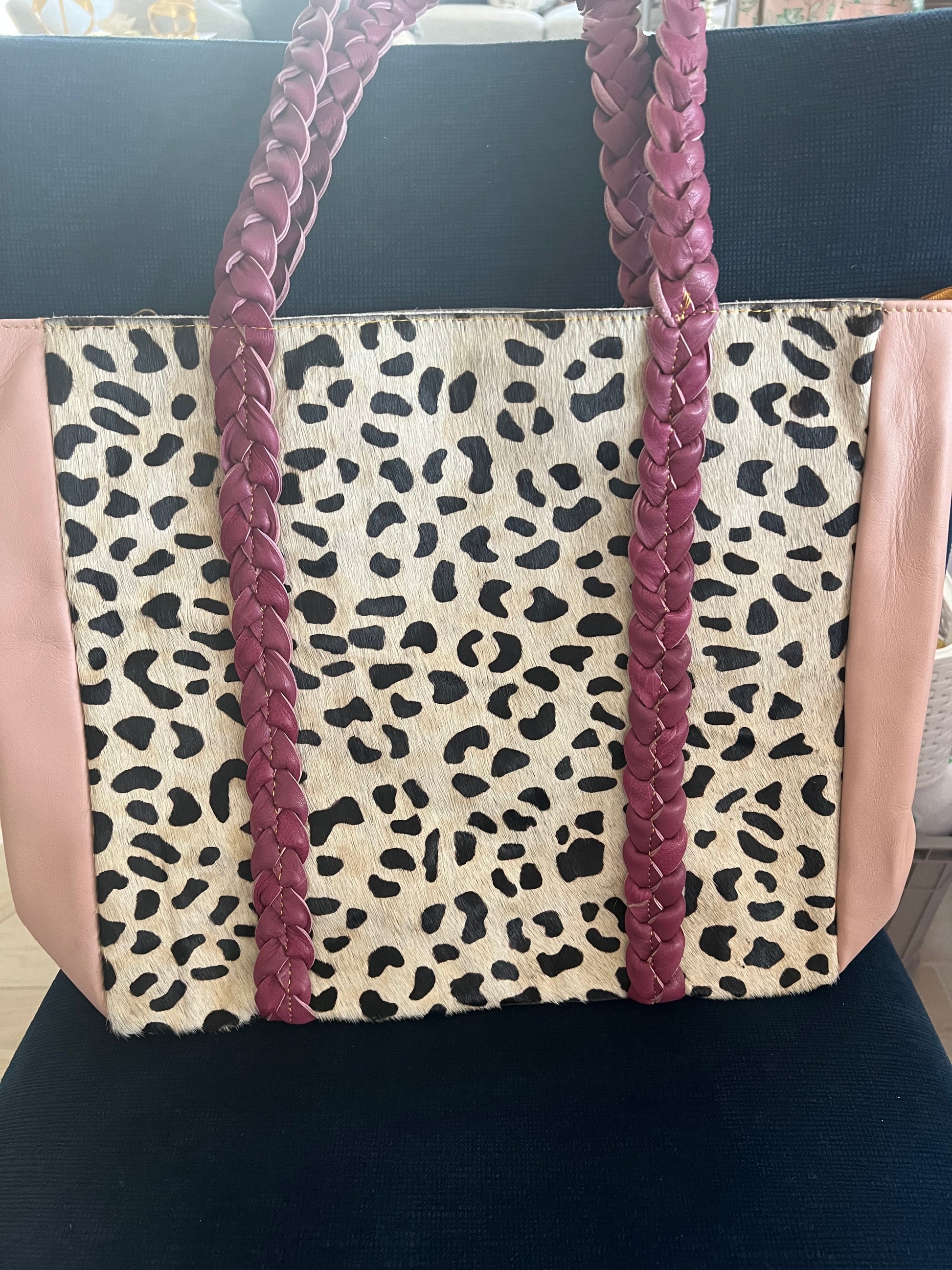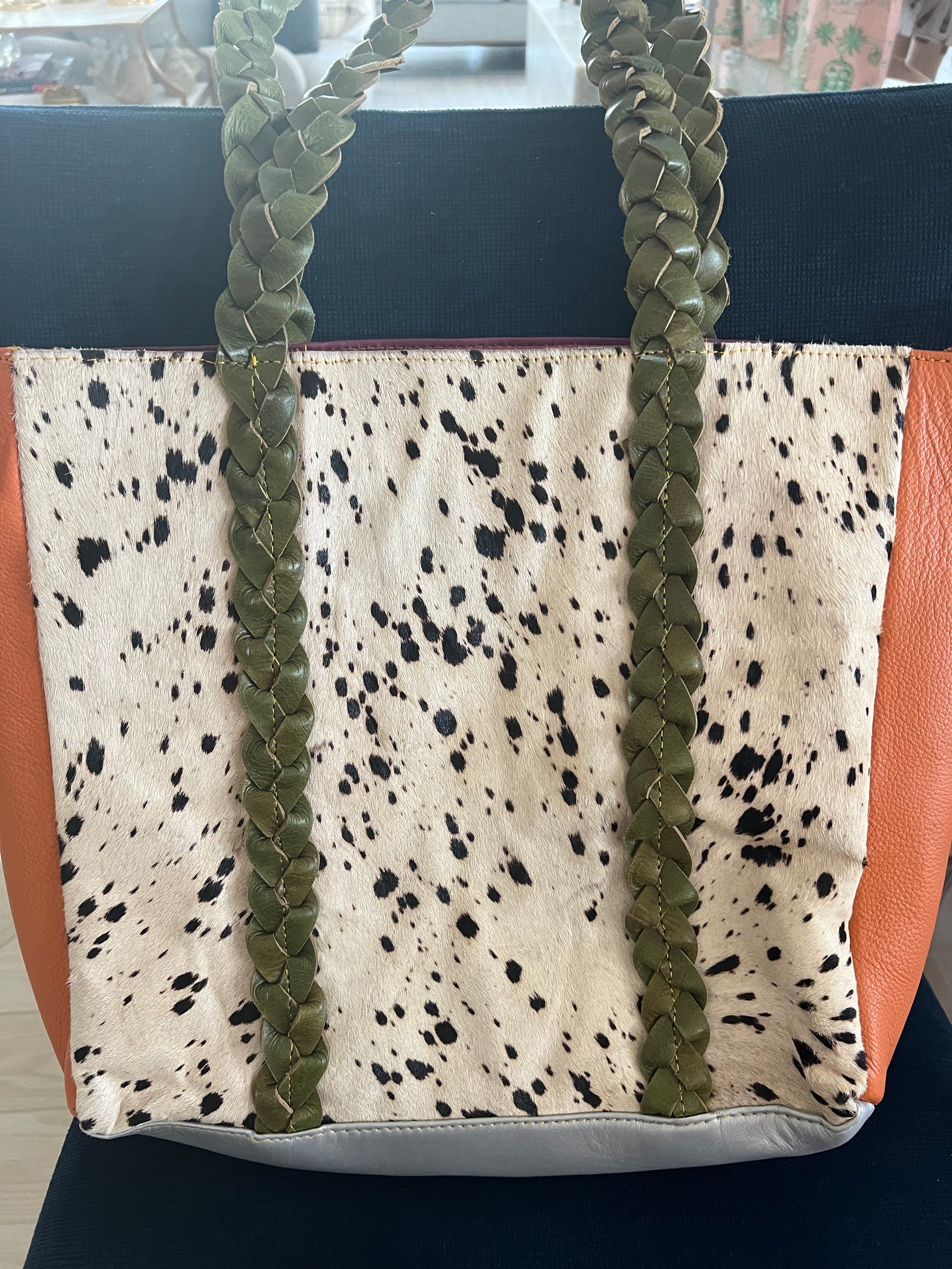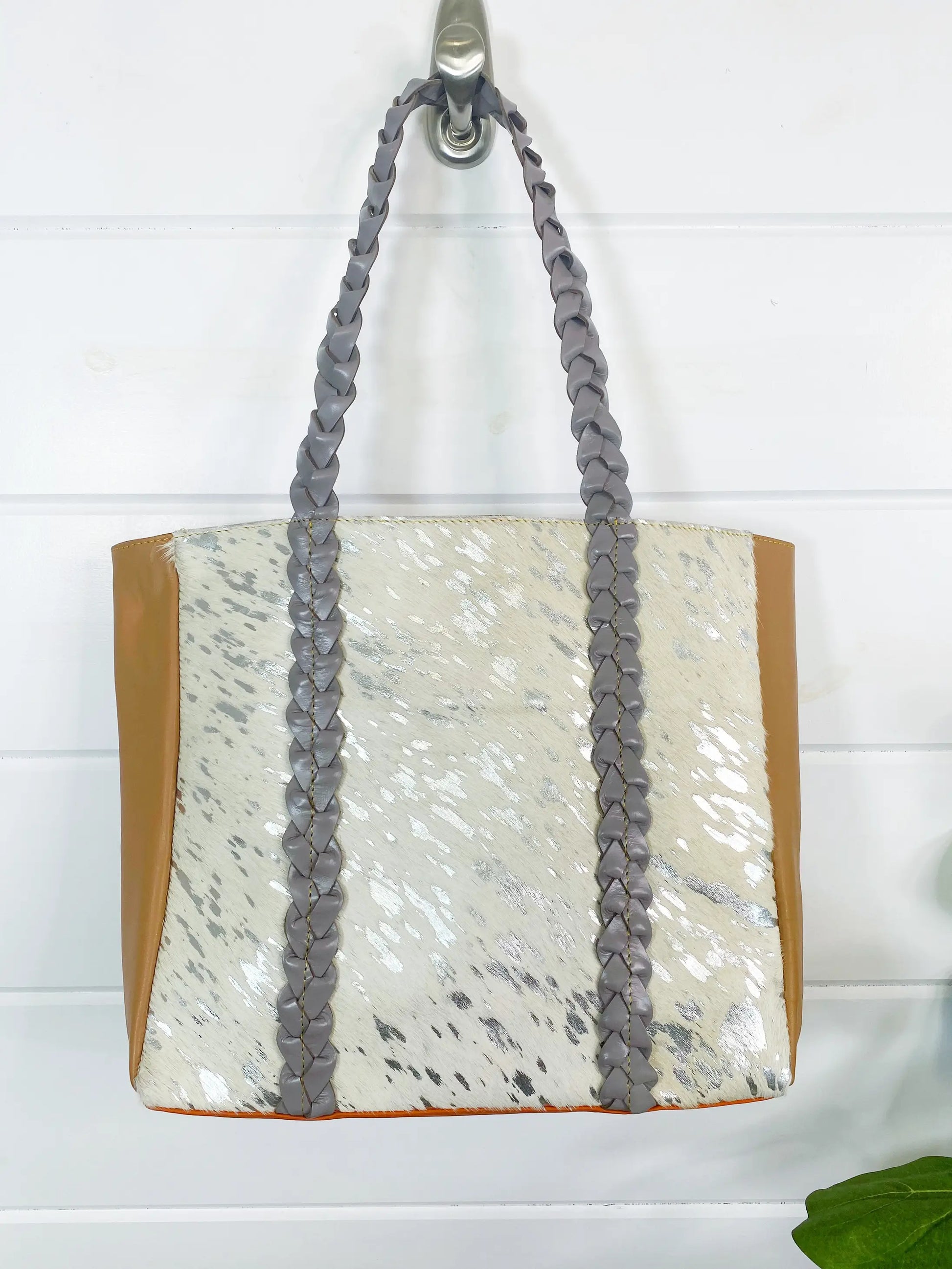 Joli Leather Hair on Hide Braided Handle Tote Bag Purse