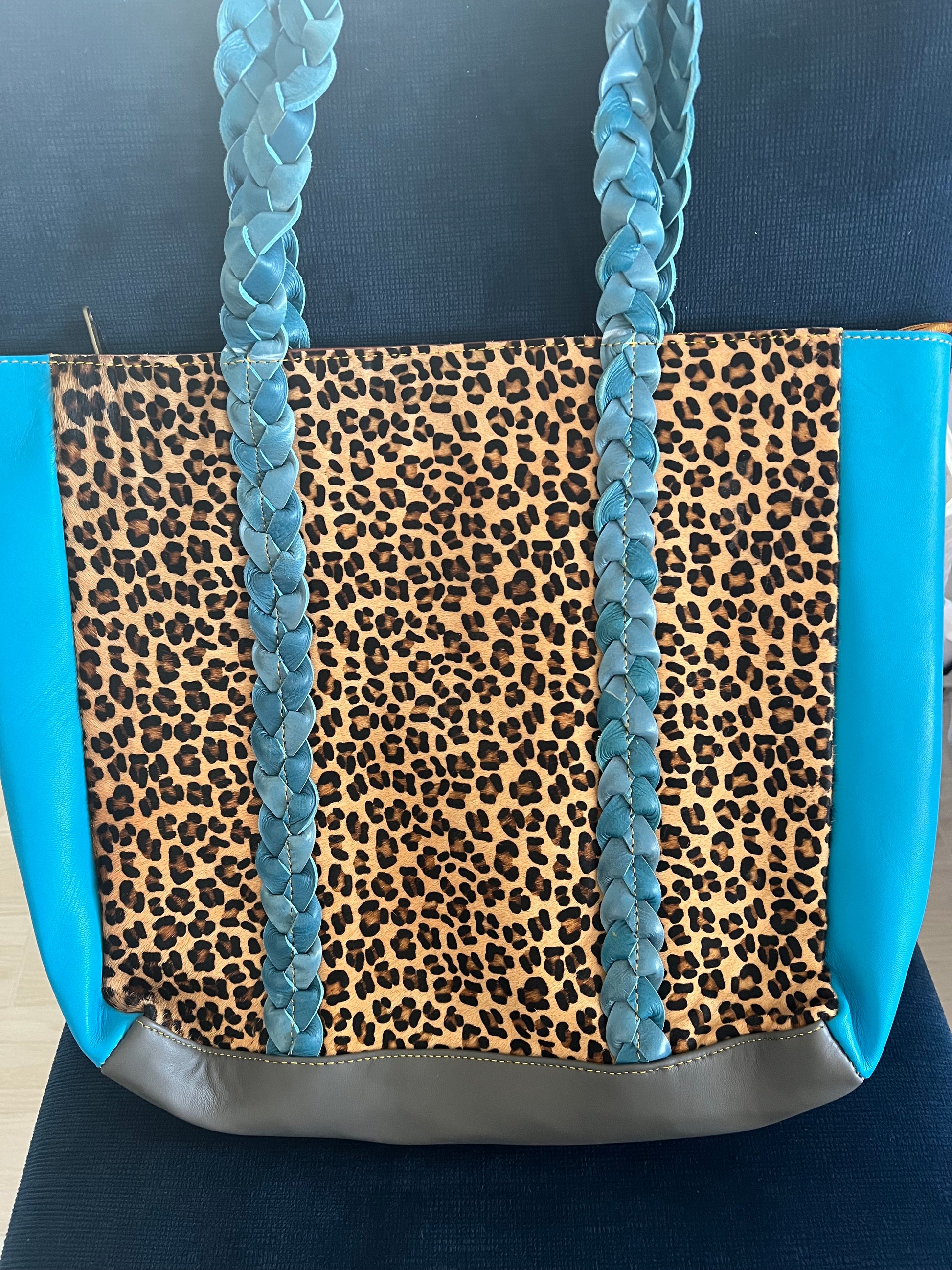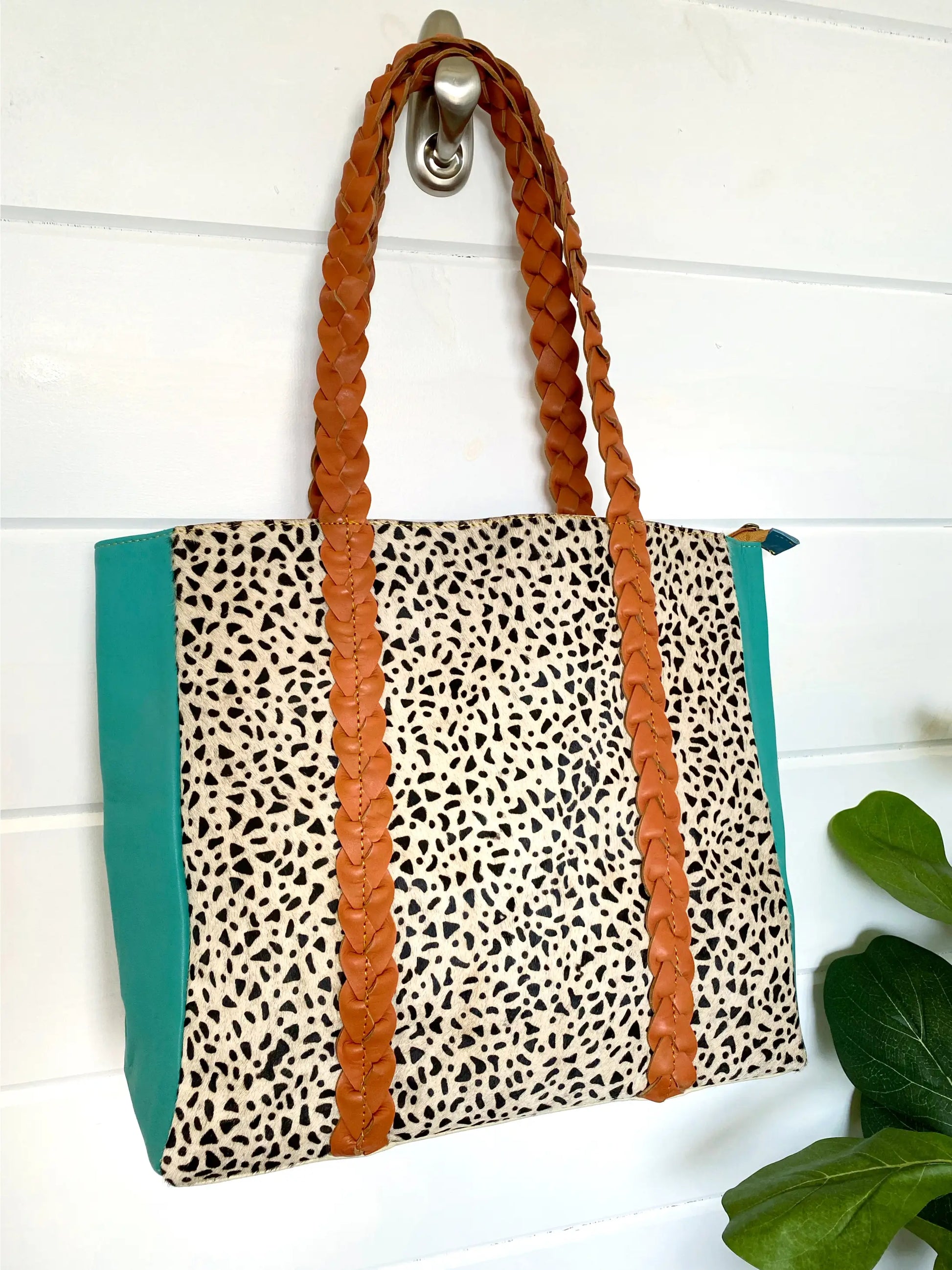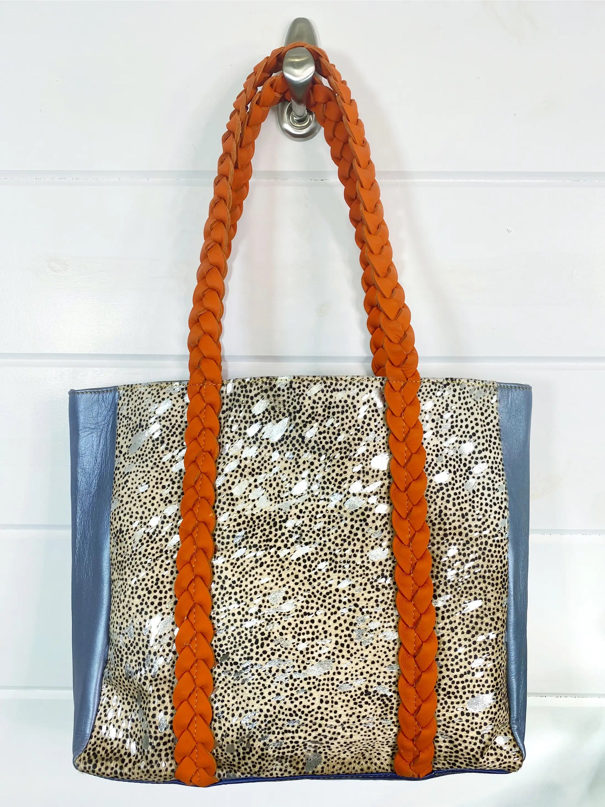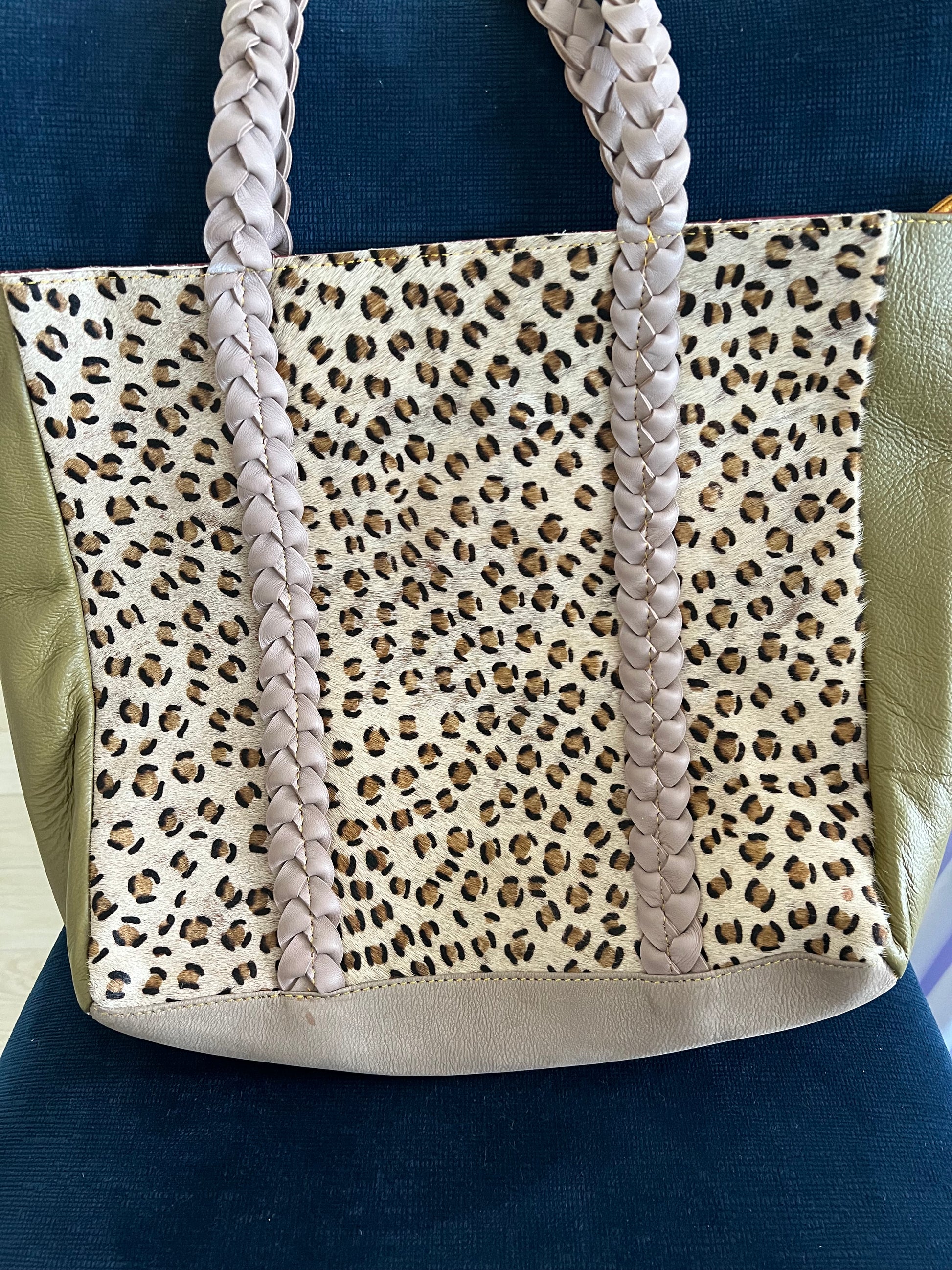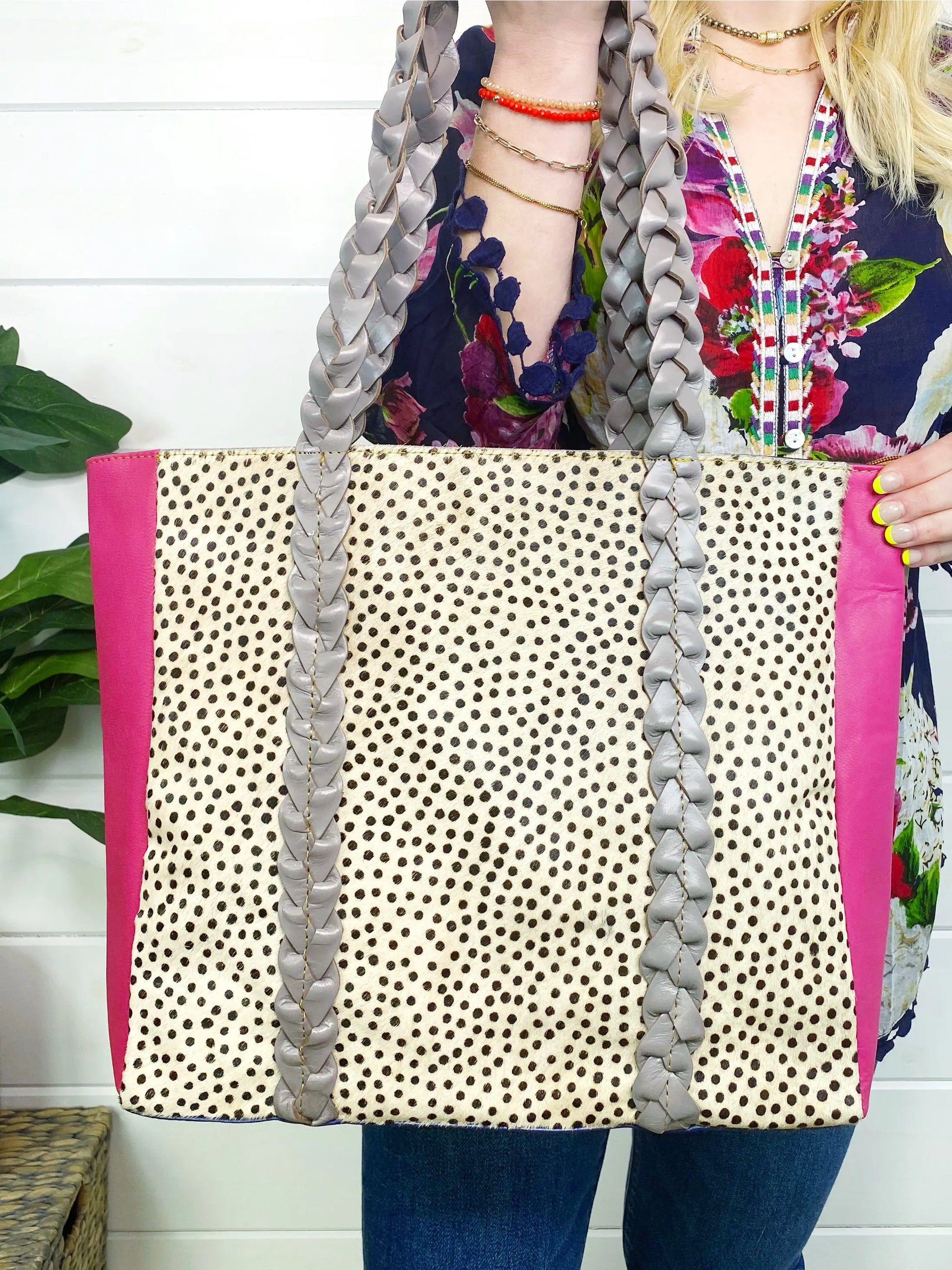 Joli Leather Hair on Hide Braided Handle Tote Bag Purse