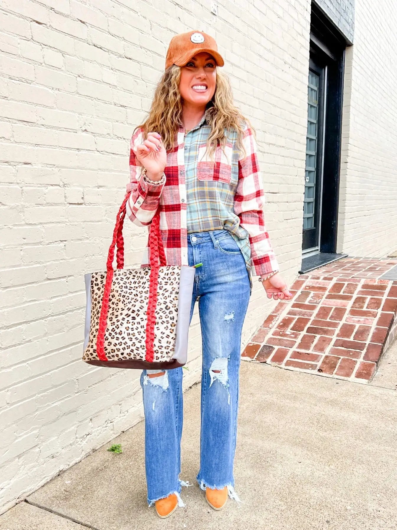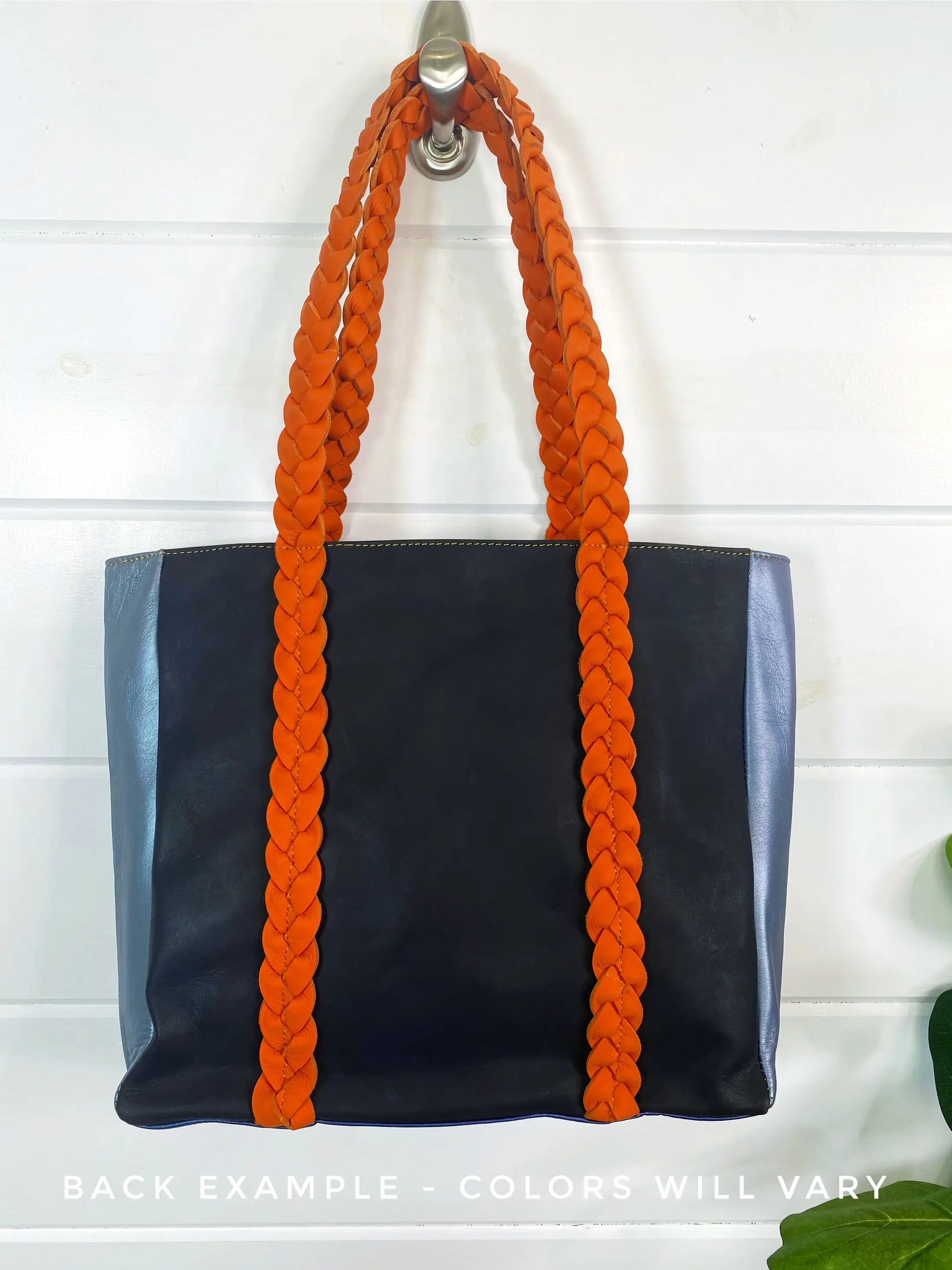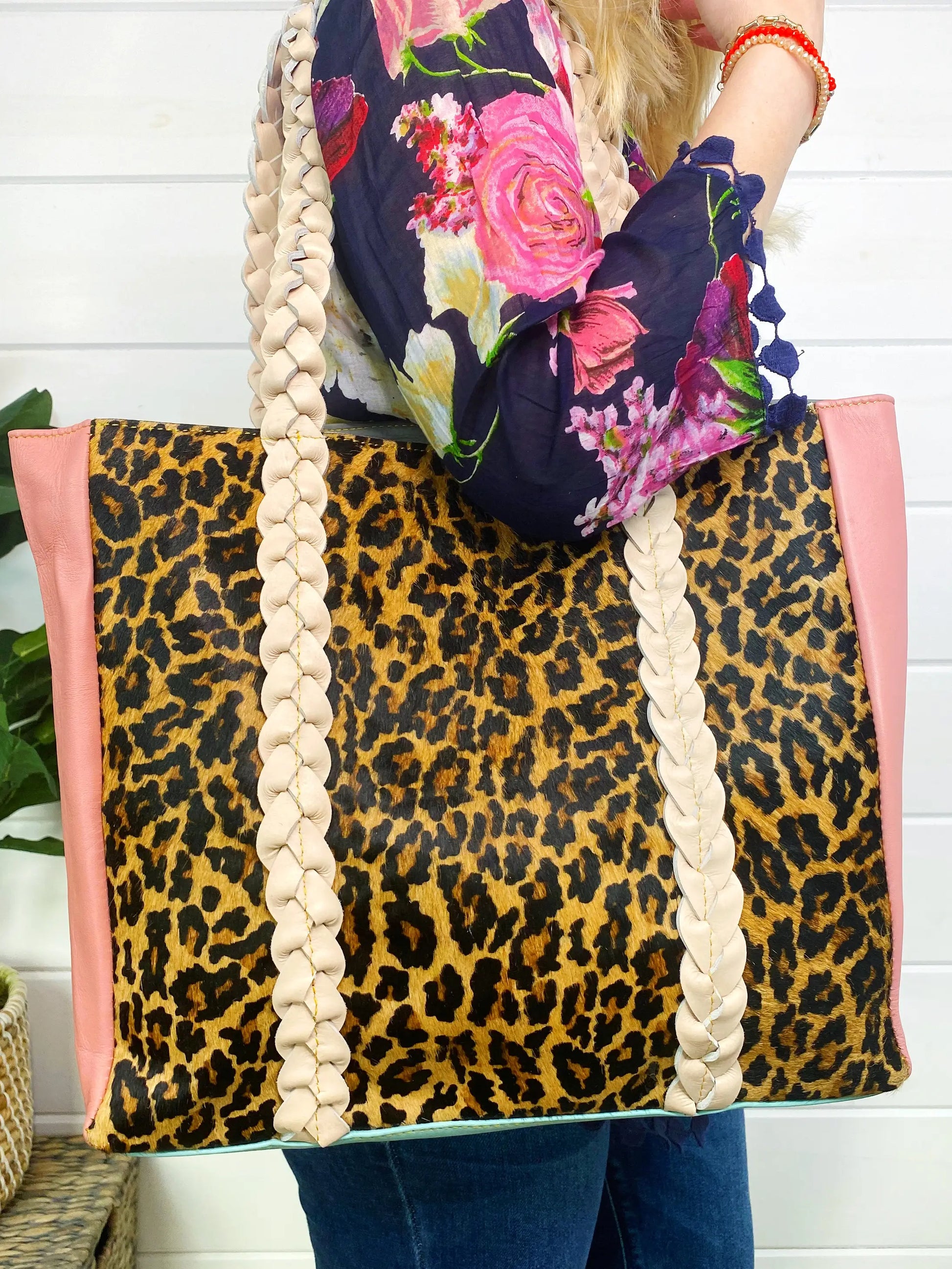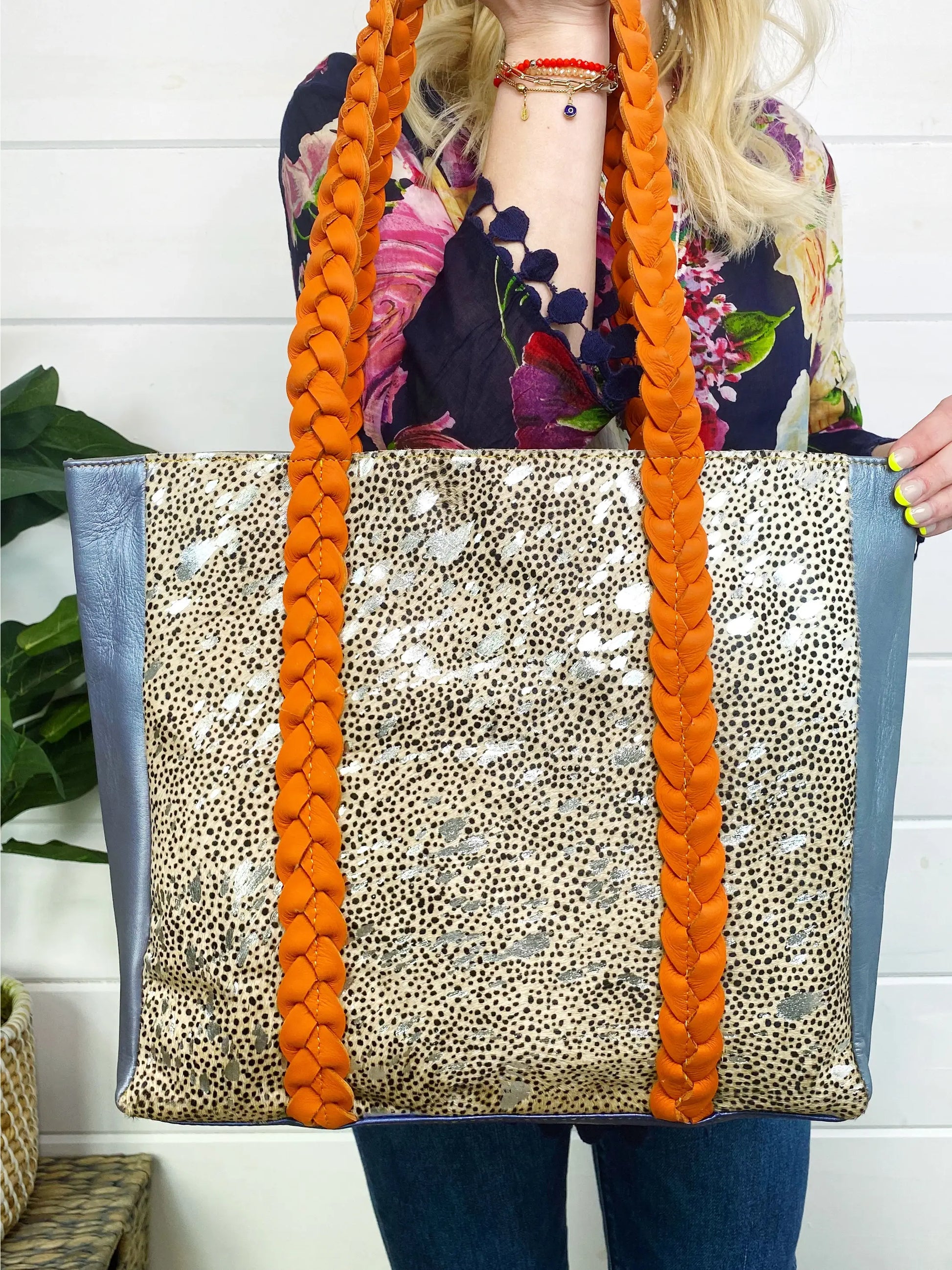 Joli Leather Hair on Hide Braided Handle Tote Bag Purse