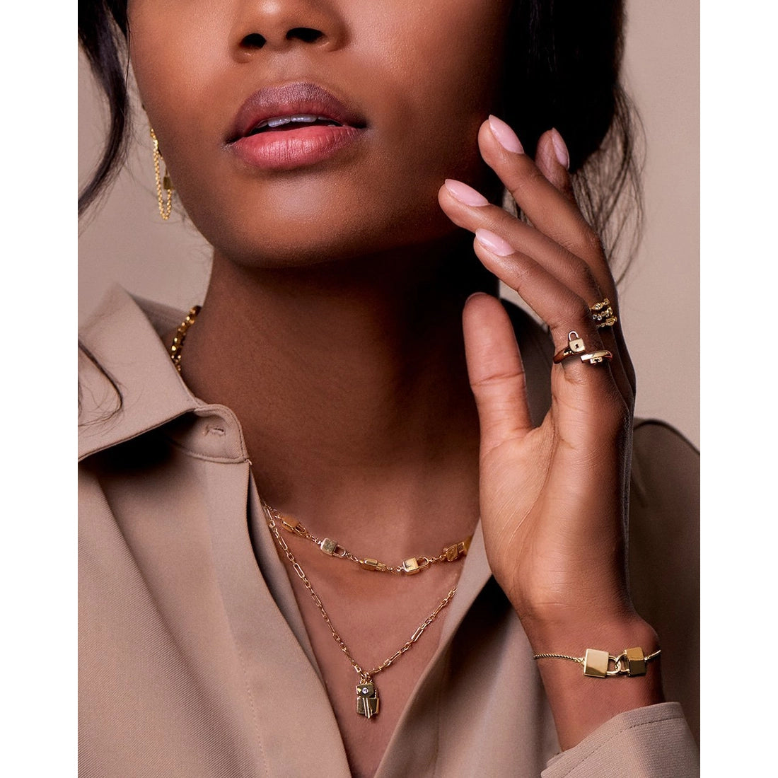 Want to add a bit of metallic shine to your look? Try on this lock and key ring! It's perfect for pairing with your other favorite rings, or wear it all on its own. This open band ring is available in gold and silver tones.