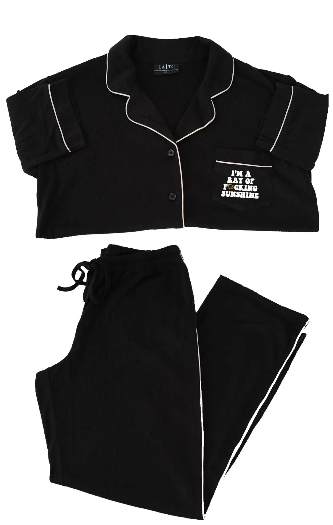 Our PJ’s fit in perfectly with our award winning lounge assortment. :) We made one amazing update adding a tuxedo strip down the side to dress it up a bit. You’re welcome!