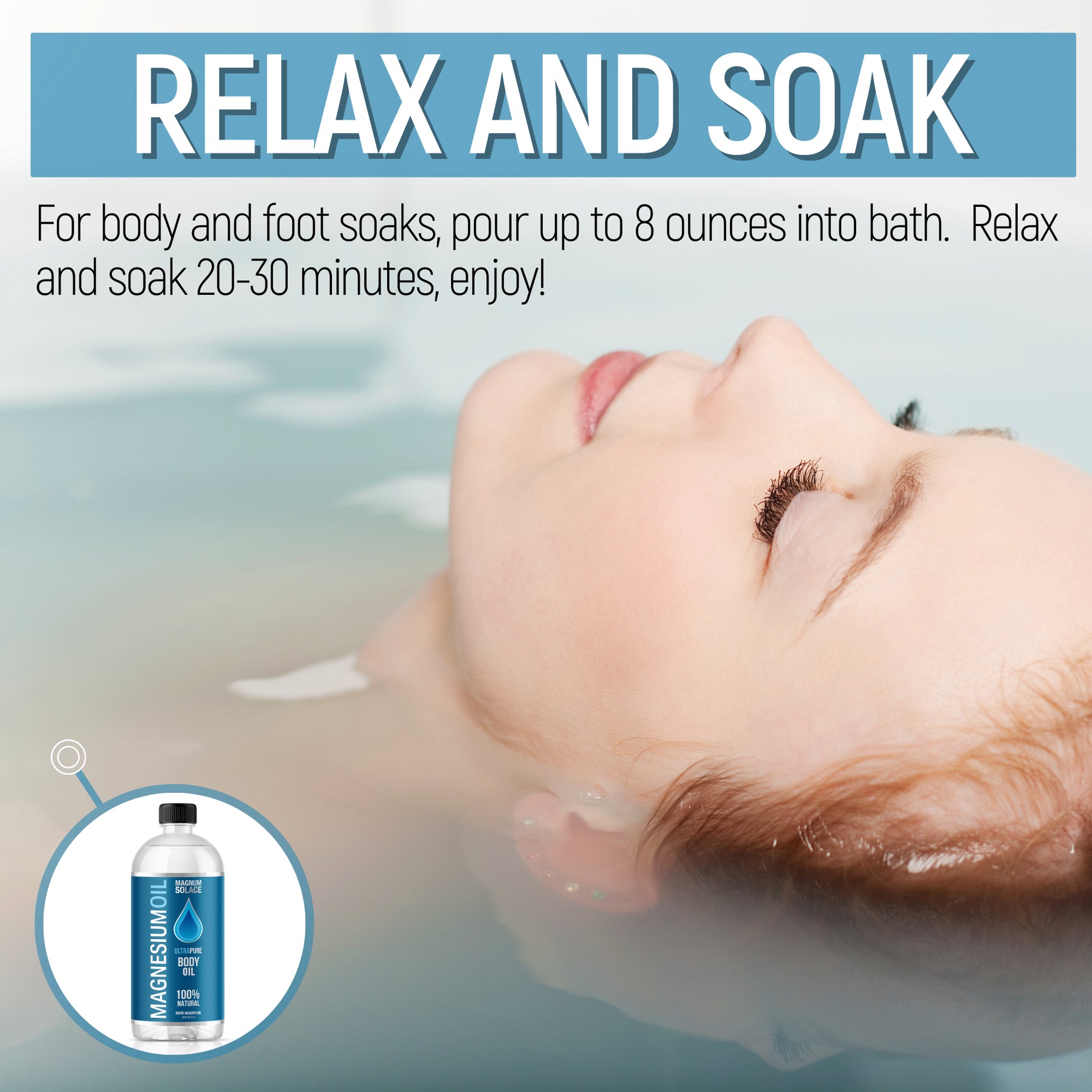 * BATH SOAKS: Pour 8 oz into warm bath water, soak for 20 minutes allowing the rich minerals to absorb through the skin and relieve sore muscles.