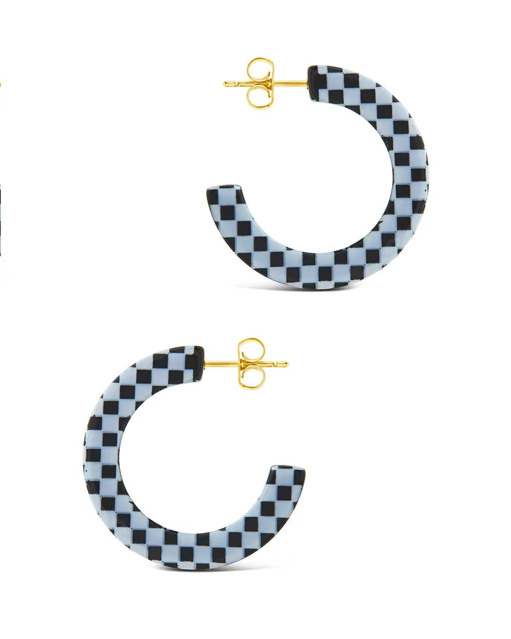 Ready to go retro? These checkered open hoops are the perfect way to add some throwback flair to your look. They fasten securely with a post back and are made from high-quality materials to ensure years of wear.