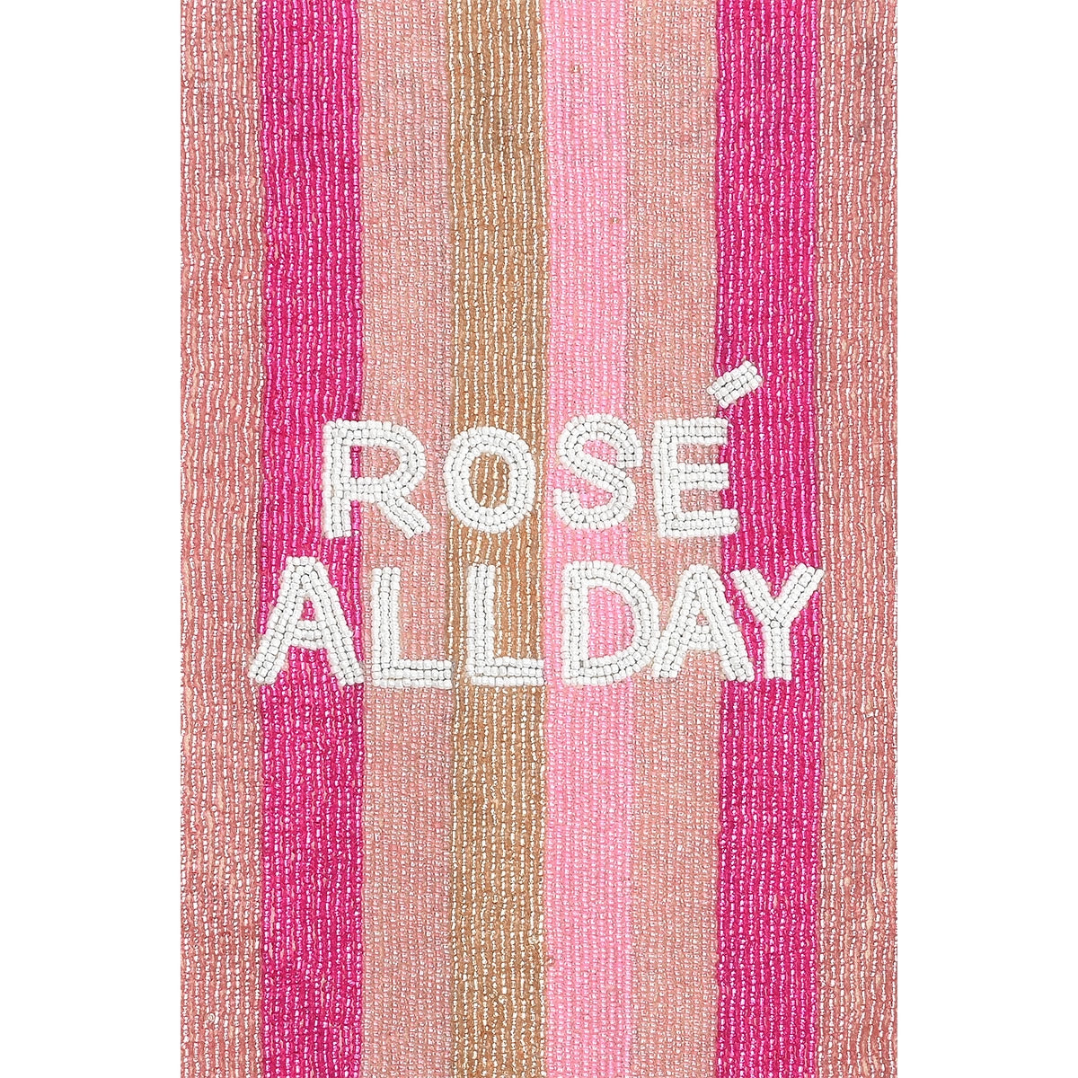 Hand Beaded Tote, Beautiful stripes beaded in shades of pink with 'Rose All Day' saying on it,