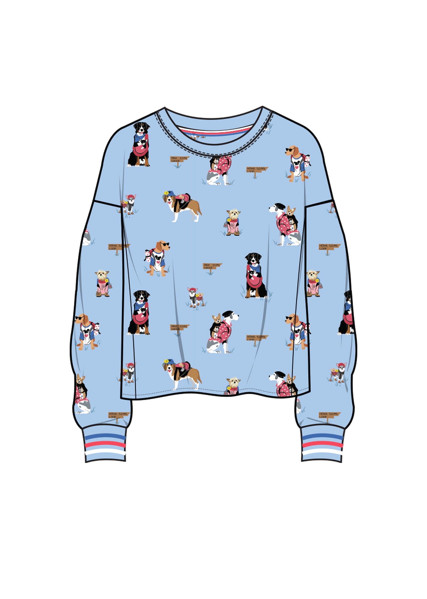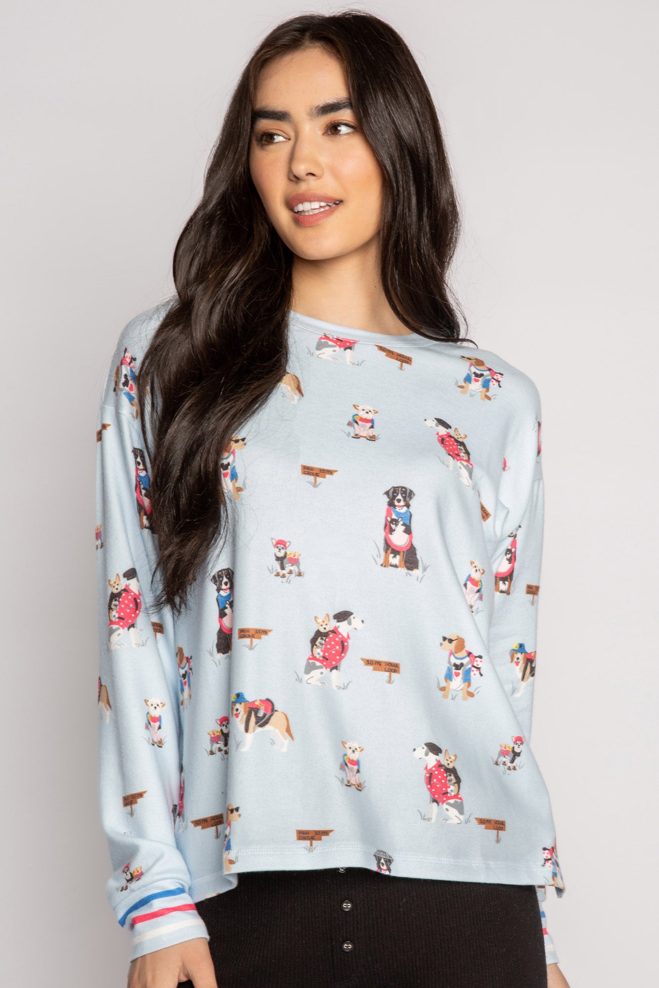 Ice Blue Pajama Top with Dog print