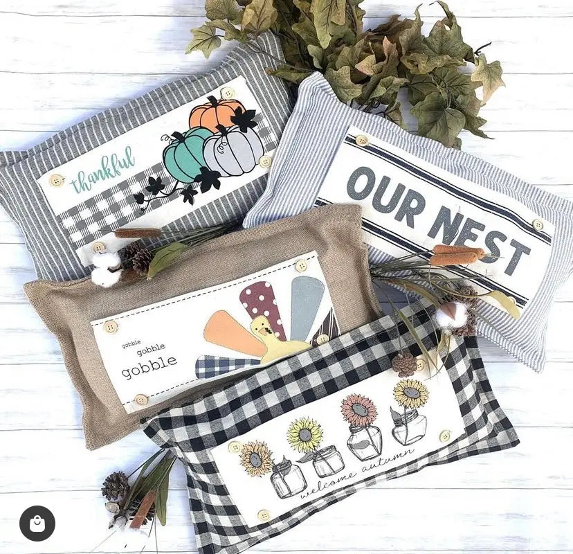 Unique gift for birthdays, weddings, graduates, BFFs, any holiday or event to celebrate! This space-saving burlap pillow never has to leave its spot! The wood-grained buttons on the front attach the panels as the seasons change!