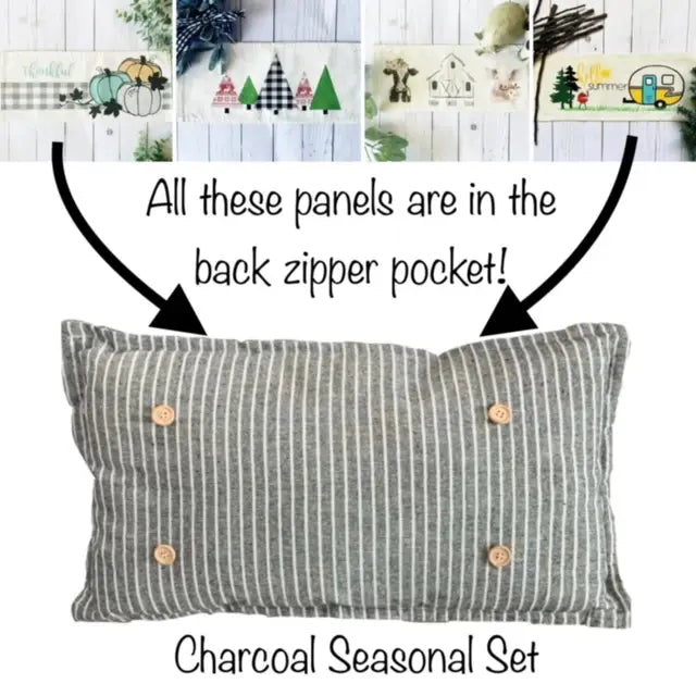 Seasonal Bundle Pillow Set: CHARCOAL/IVORY STRIPES (comes with foam insert and these 4 panels in back pocket)