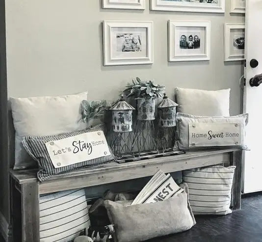 Pillow dimensions: approx. 12" tall x 22" long. So cute on a bench, an old chair, mantel, recliner.