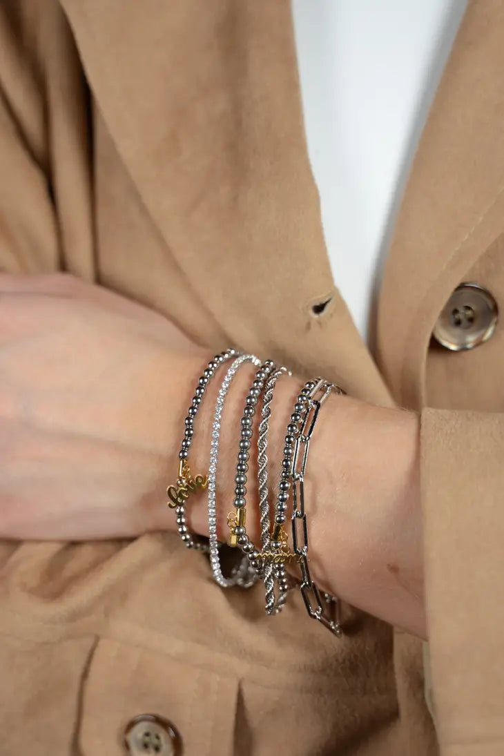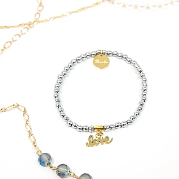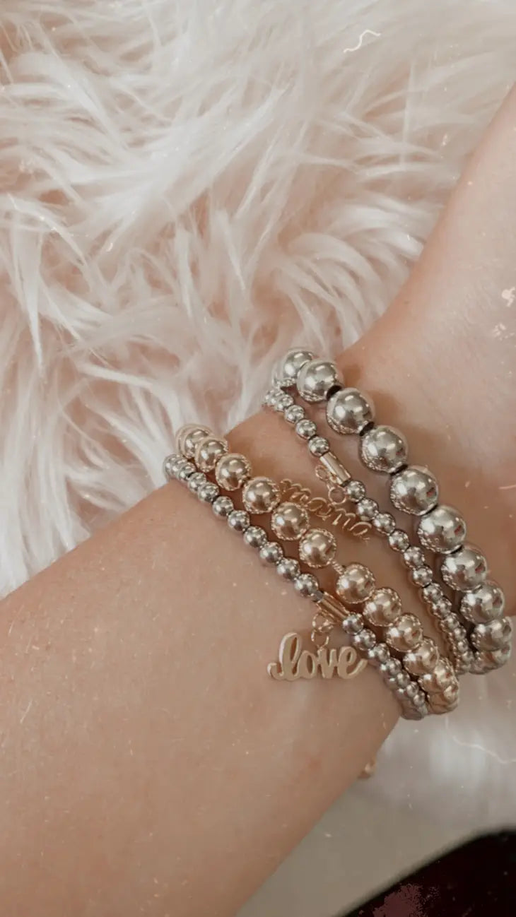 Silver Beaded Love Bracelet