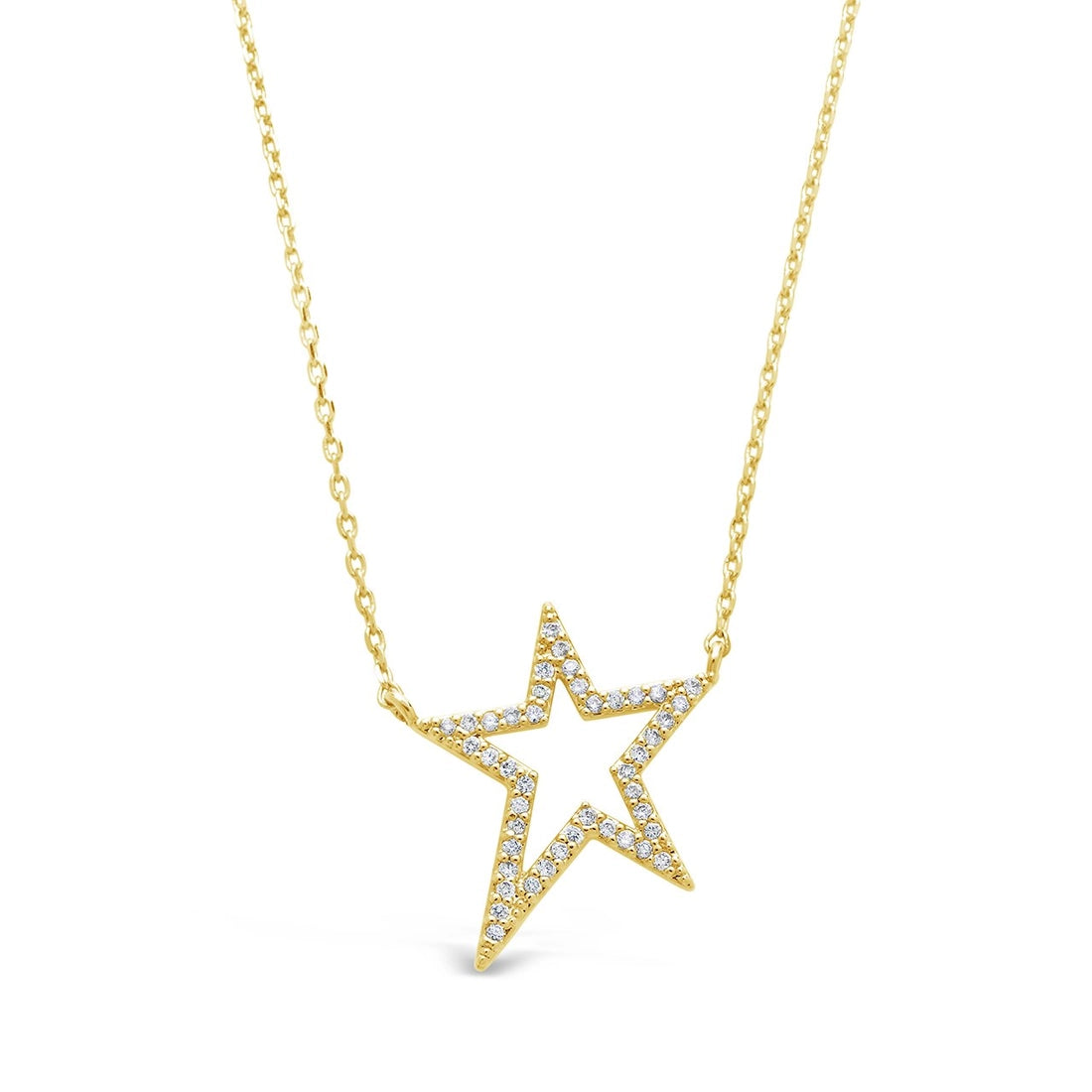 Ready to shine bright? All you need to do is put on this bright open sterling silver CZ star necklace, and you'll be sure to grab attention everywhere you go. Available in gold and silver tones.