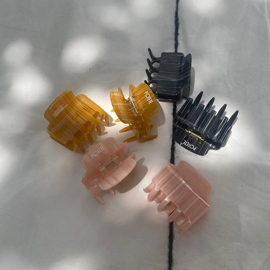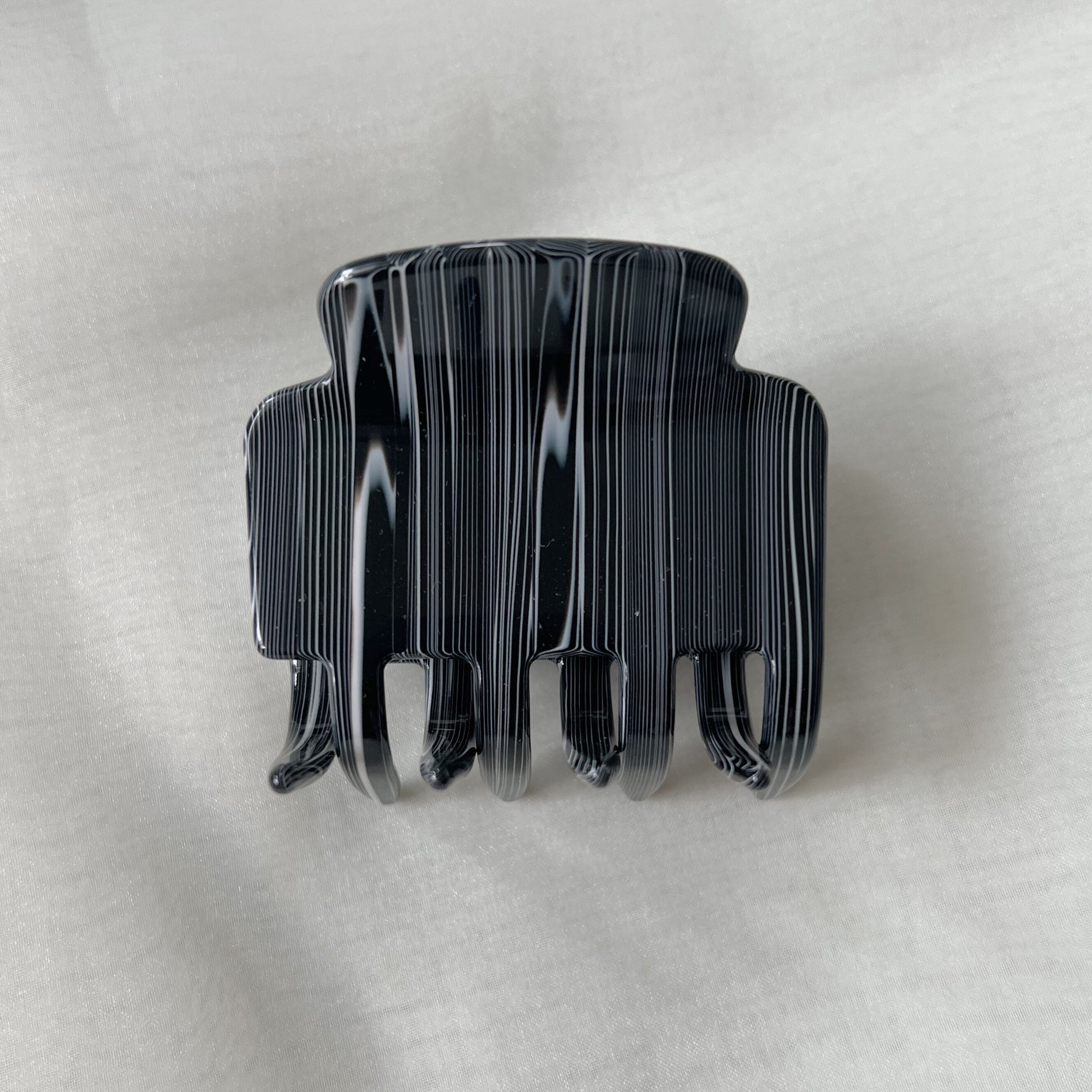 A rough, four-toothed hair clip with holding power. Easy to use regardless of the season, the stripes are the best result ever. Recommended for short bob to medium hair half-up. If you have long hair or a lot of hair, tie it with rubber once and then put it on to improve the fit. Because the spring is softer than a large clip, it is recommended for those who are prone to head pain with hair accessories.