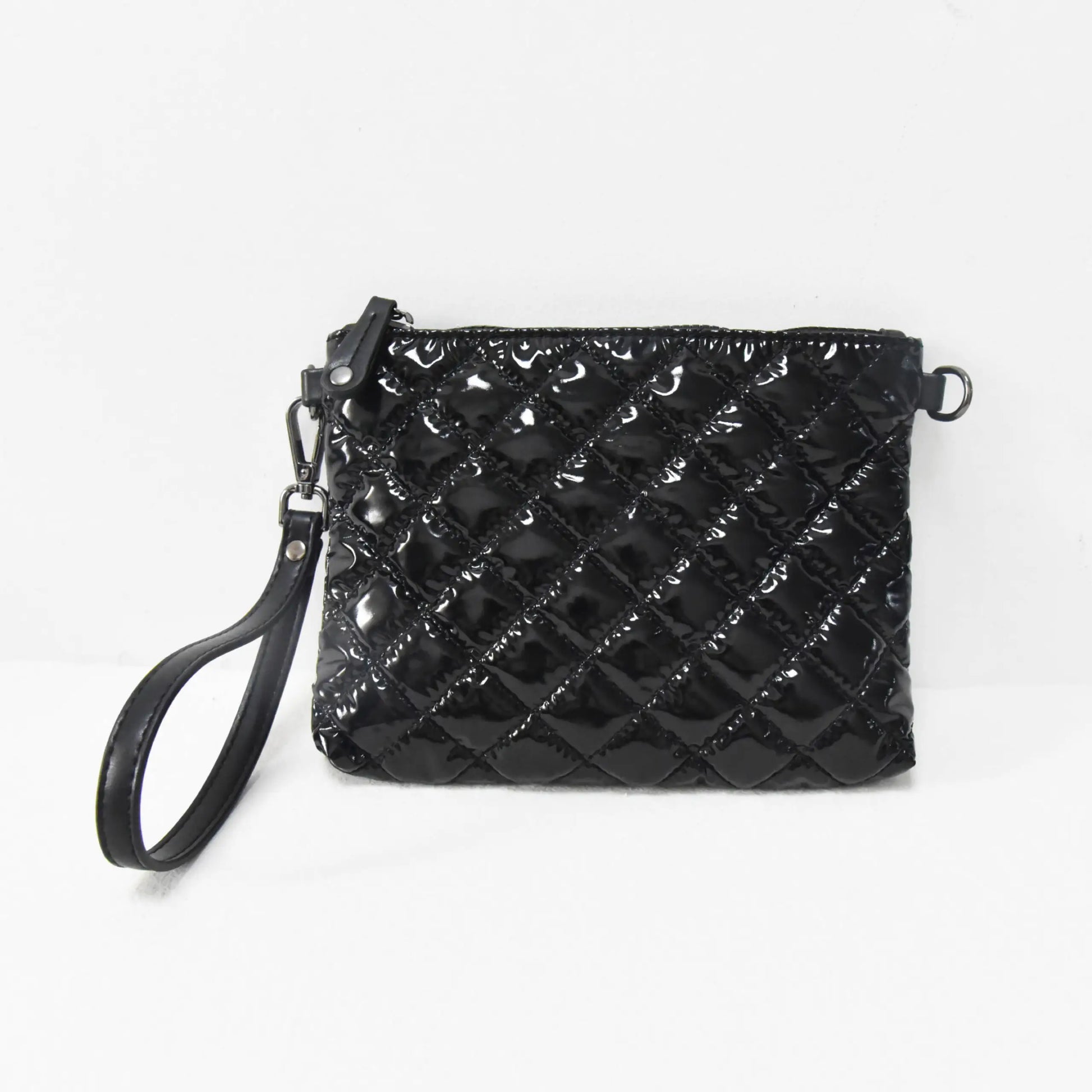 Our newest addition, the diamond puffer collection is on trend with its patent lacquer finish in four beautiful color. The traditional Black Patent, the Gunmetal Patent, the Gold Metallic Patent and the Almond Patent. Great for everyday or on the go! Comes with detachable striped handle strap for easy carrying.