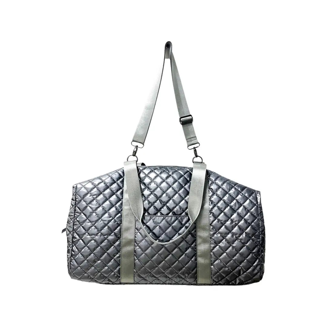 Our newest addition, the diamond puffer collection is on trend with its patent lacquer finish in four beautiful color. The traditional Black Patent, the Gunmetal Patent, the Gold Metallic Patent and the Almond Patent. Great for everyday or on the go! Comes with detachable striped strap for easy carrying over the shoulder or crossbody.
